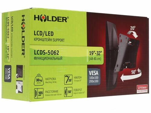 Кронштейн Holder LCDS-5062 черный для ЖК ТВ 19-32" настенный от стены 105мм наклон +15°/-25° поворот 50° до 30кг
