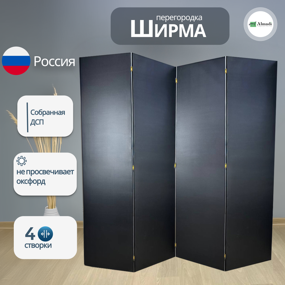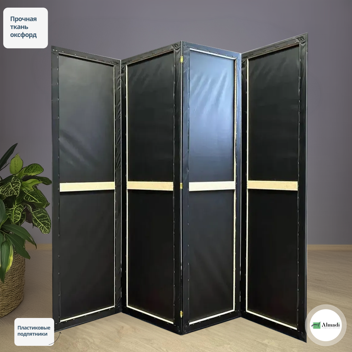 Купить Ширма перегородка интерьерная для зонирования комнаты черная 4 створки