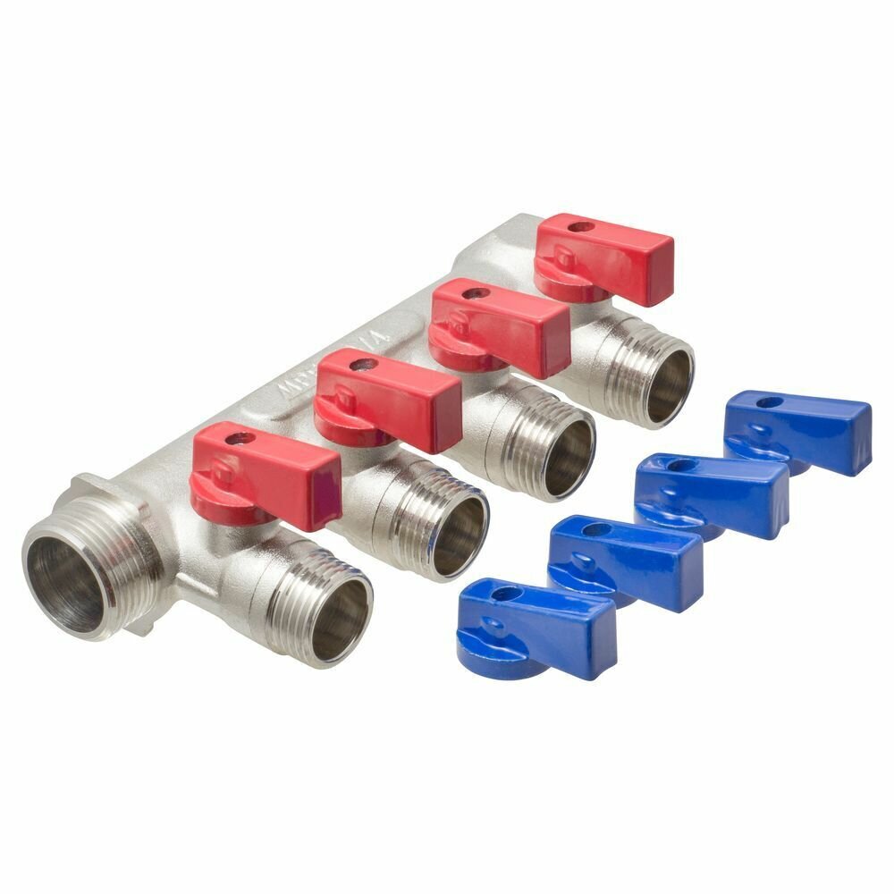 Купить Коллектор MPF с отсекающими кранами 3/4" 4 выхода 1/2" наружная резьба
