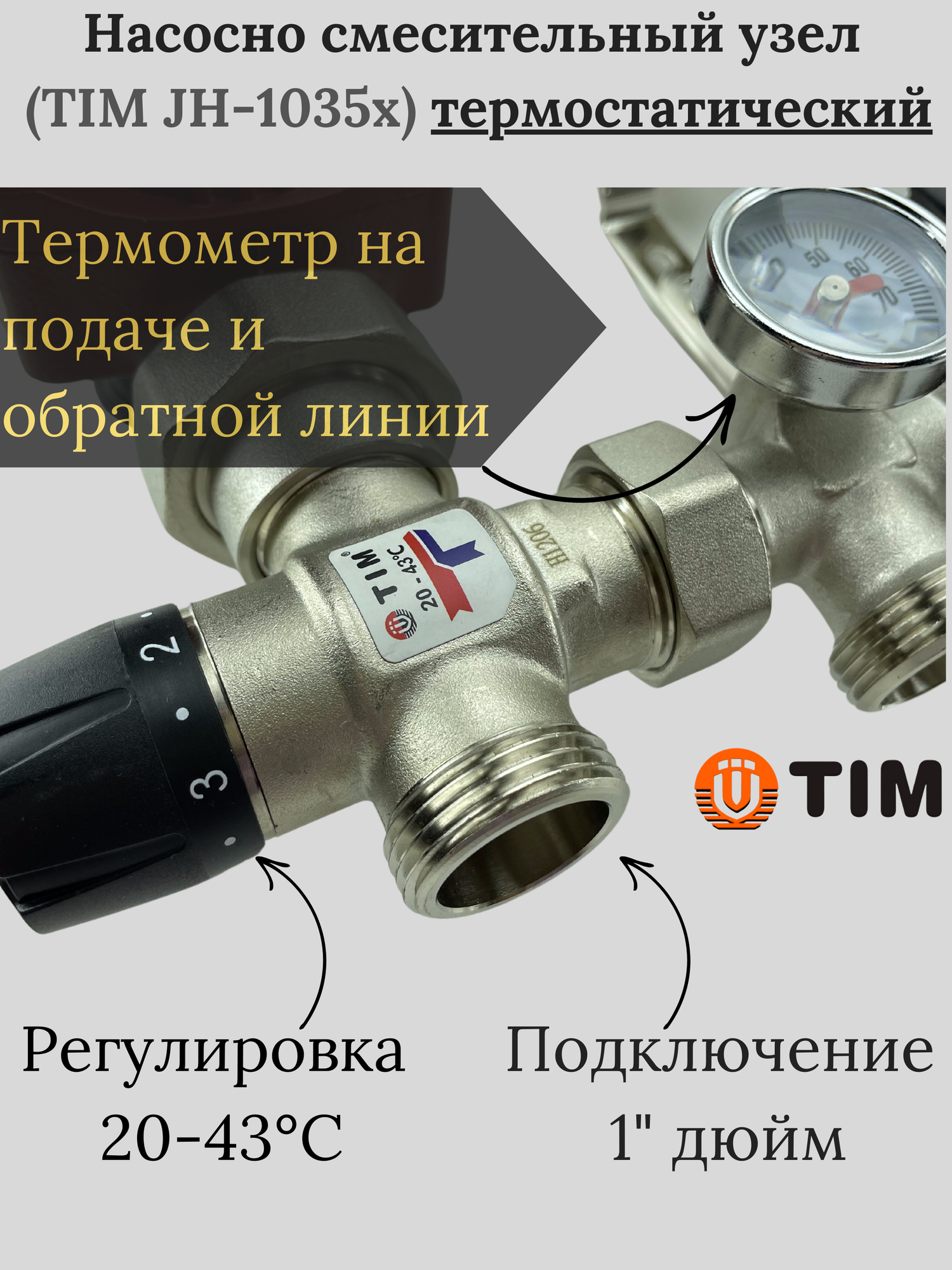 Купить Комплект для водяного теплого пола : Коллектор 8 выходов с расходомерами 1" - 3/4" + узел JH-1035 + насос 25-60 130 + евроконус - TIM