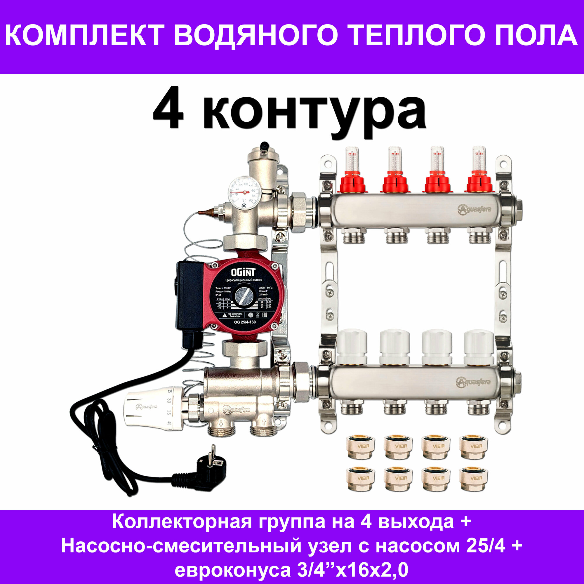 Купить Комплект для водяного теплого пола до 55 кв.м. (на 4 контура) Aquasfera