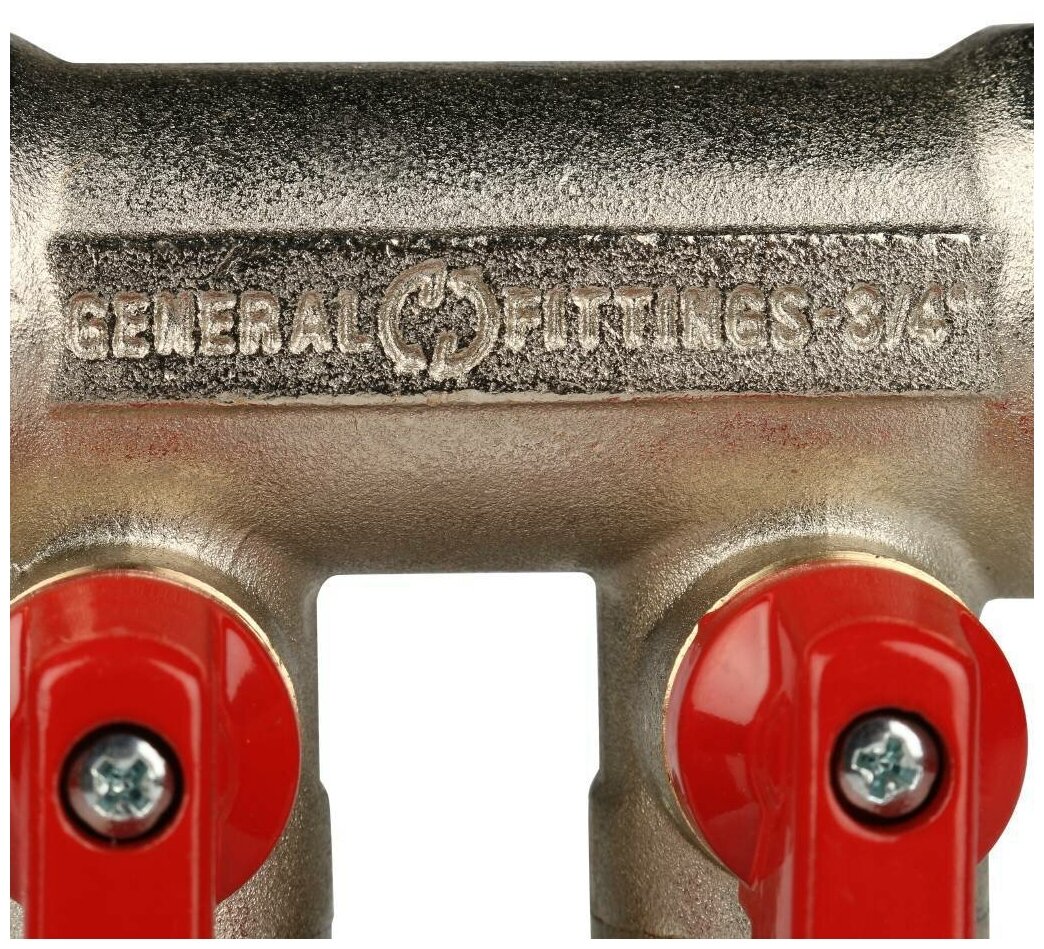 Коллектор с кранами и прокладкой O-Ring 3/4" STOUT 2 выхода 1/2", красные ручки интересное: