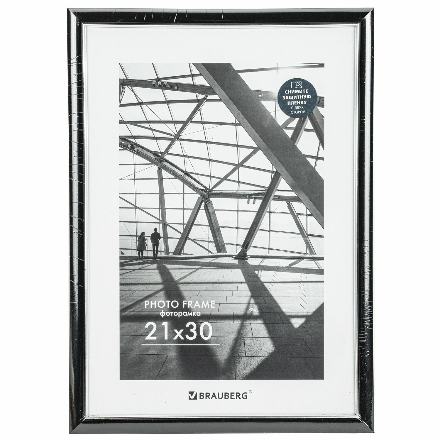 Рамка 21х30 см небьющаяся, багет 14,6 мм, пластик, BRAUBERG "Original Line", черная/серебро, 391234, в комплекте 1шт
