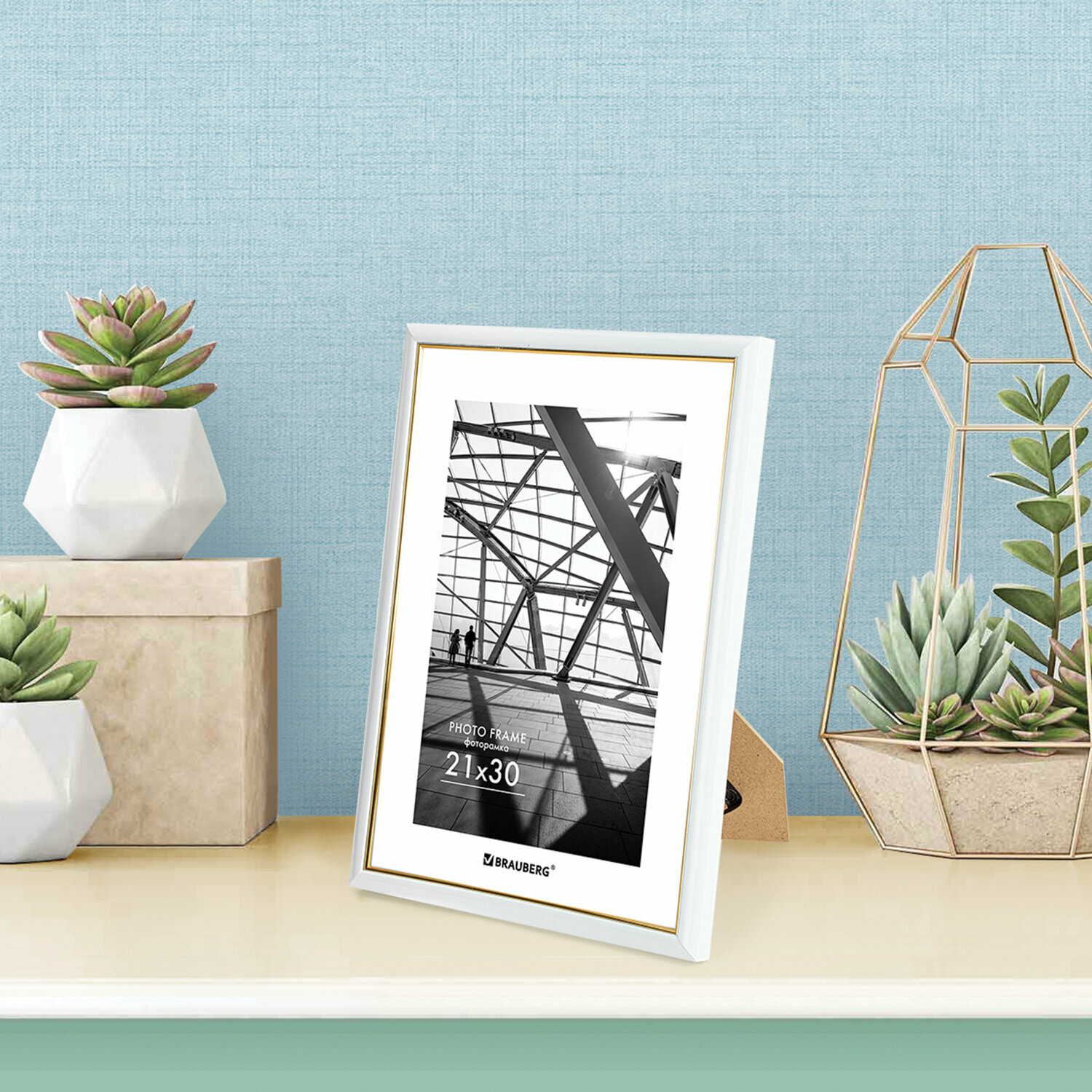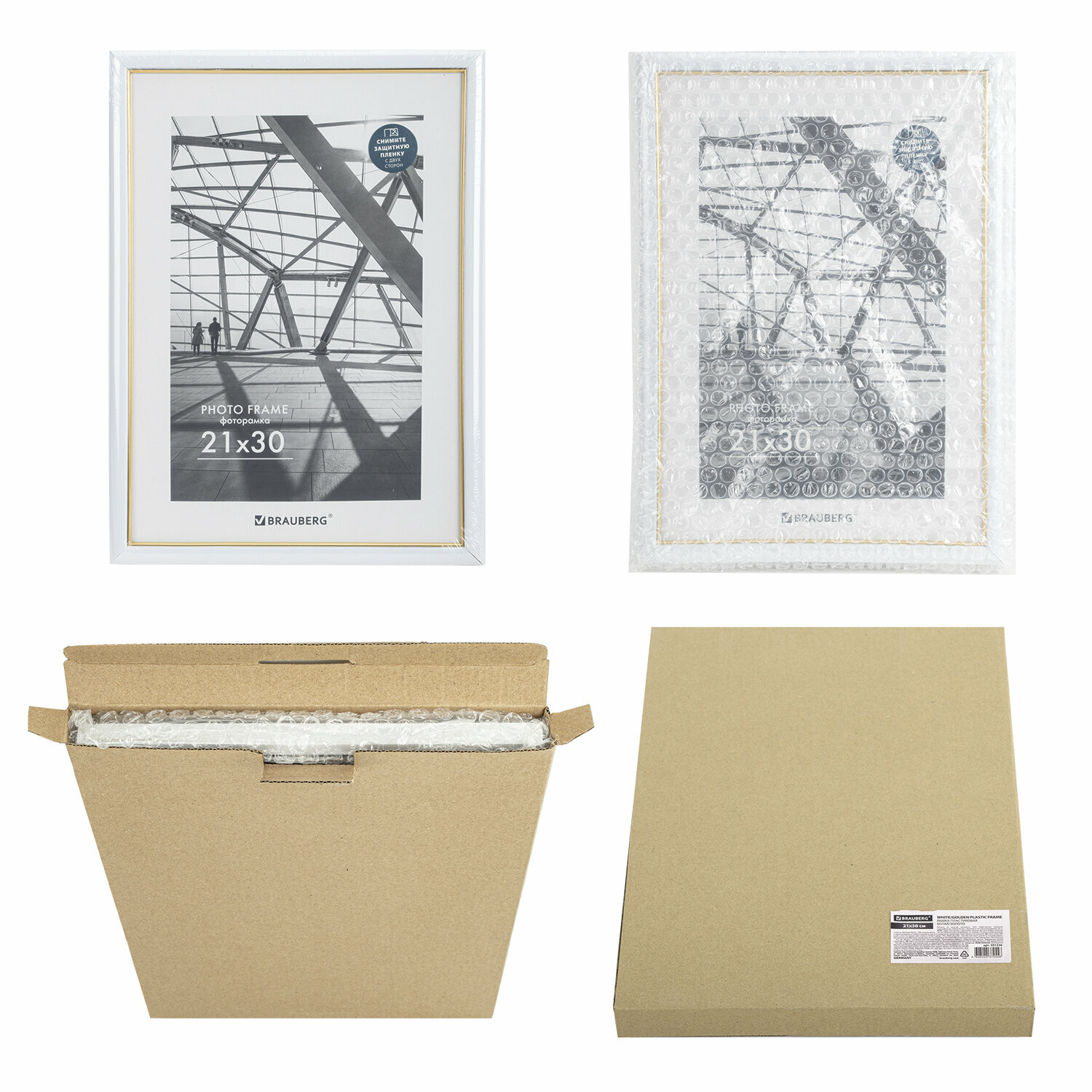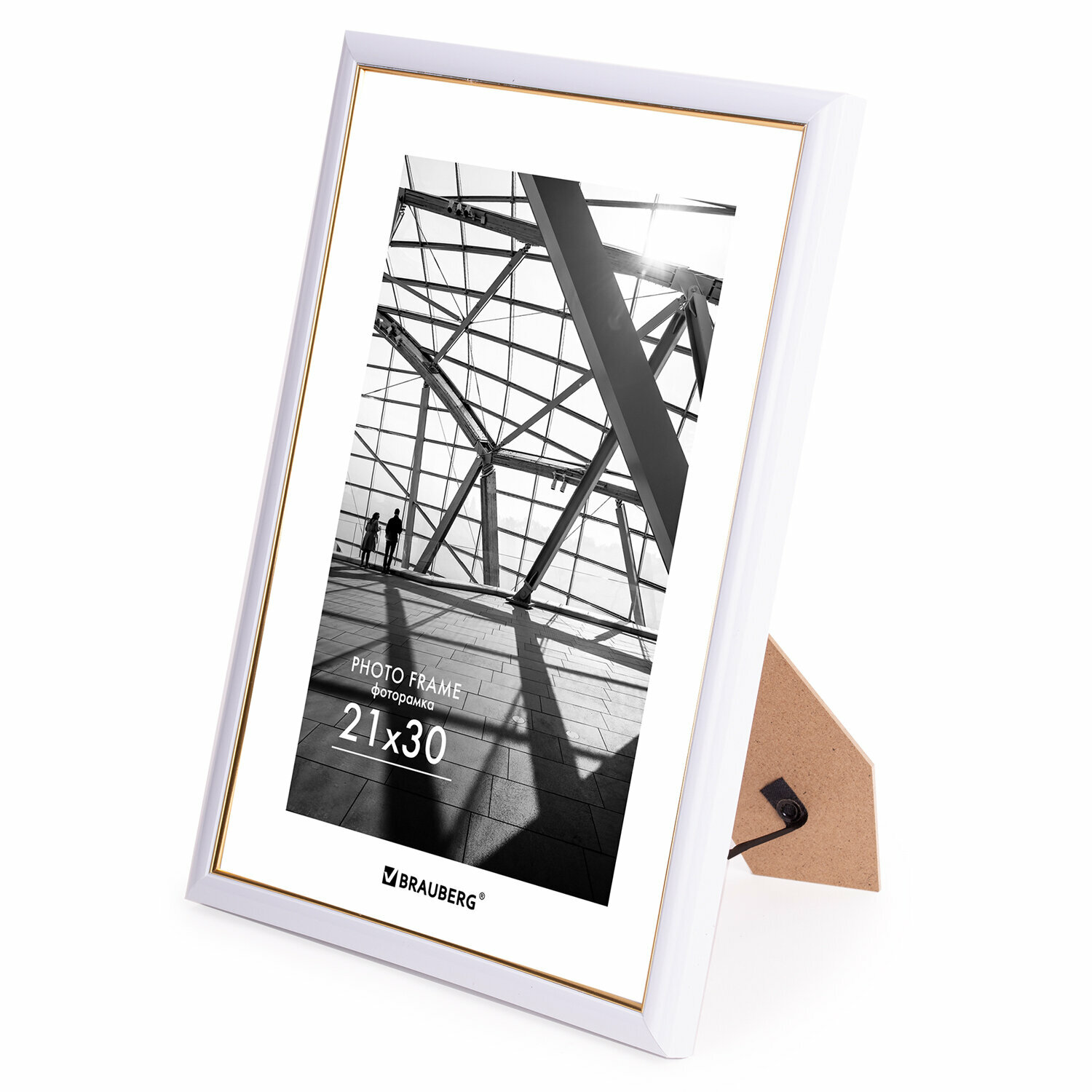 СохранитьРамка (фоторамка) для фото, фотографий, картин, грамот на стену А4 21х30 см небьющаяся, багет 14,6 мм, пластик, Brauberg, белая/золото, 391236 интересное:
