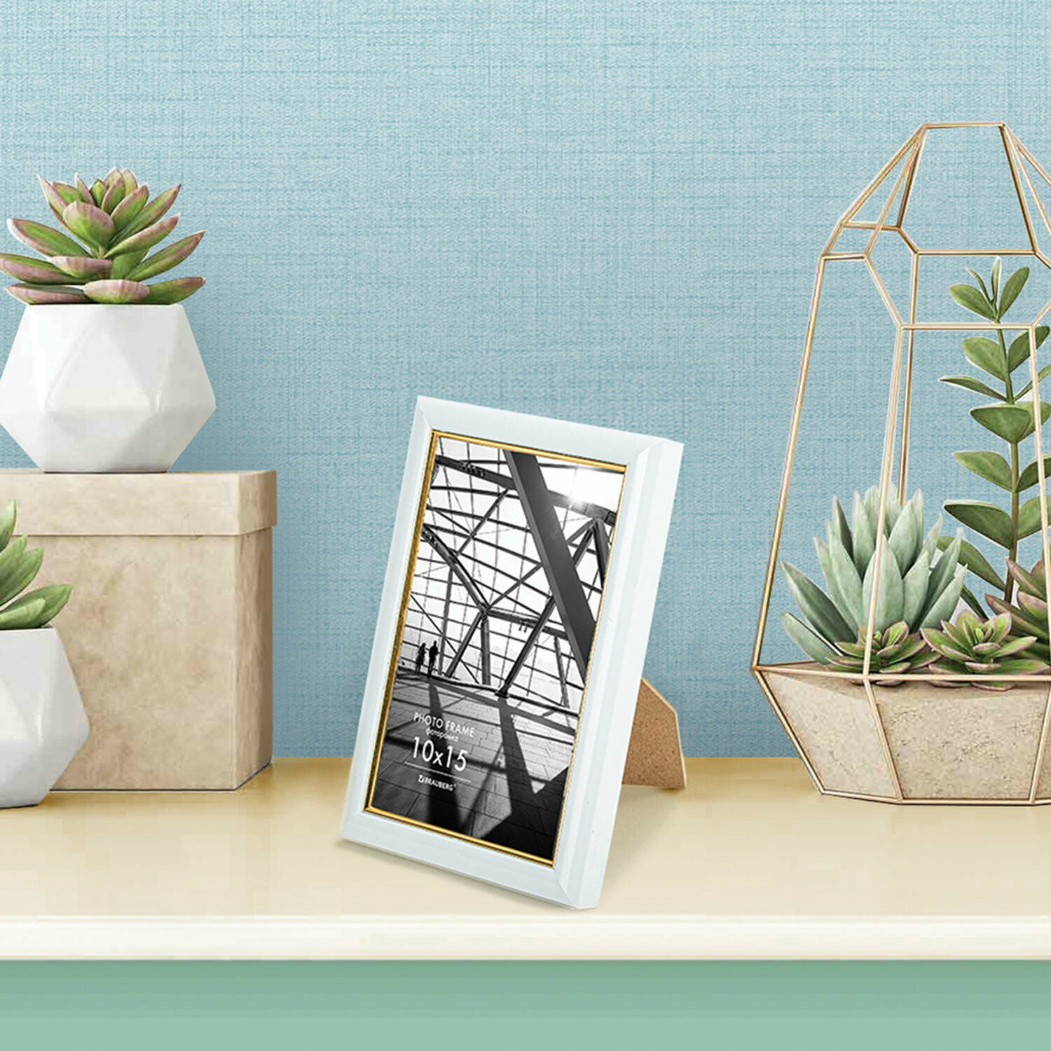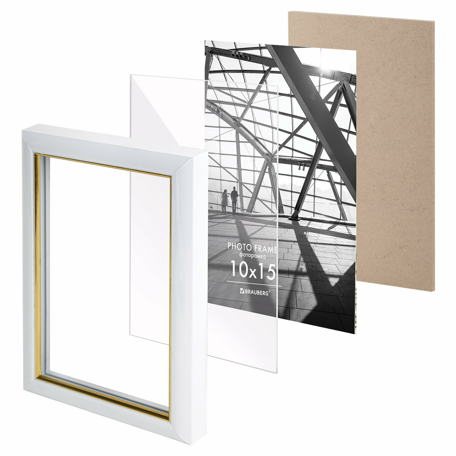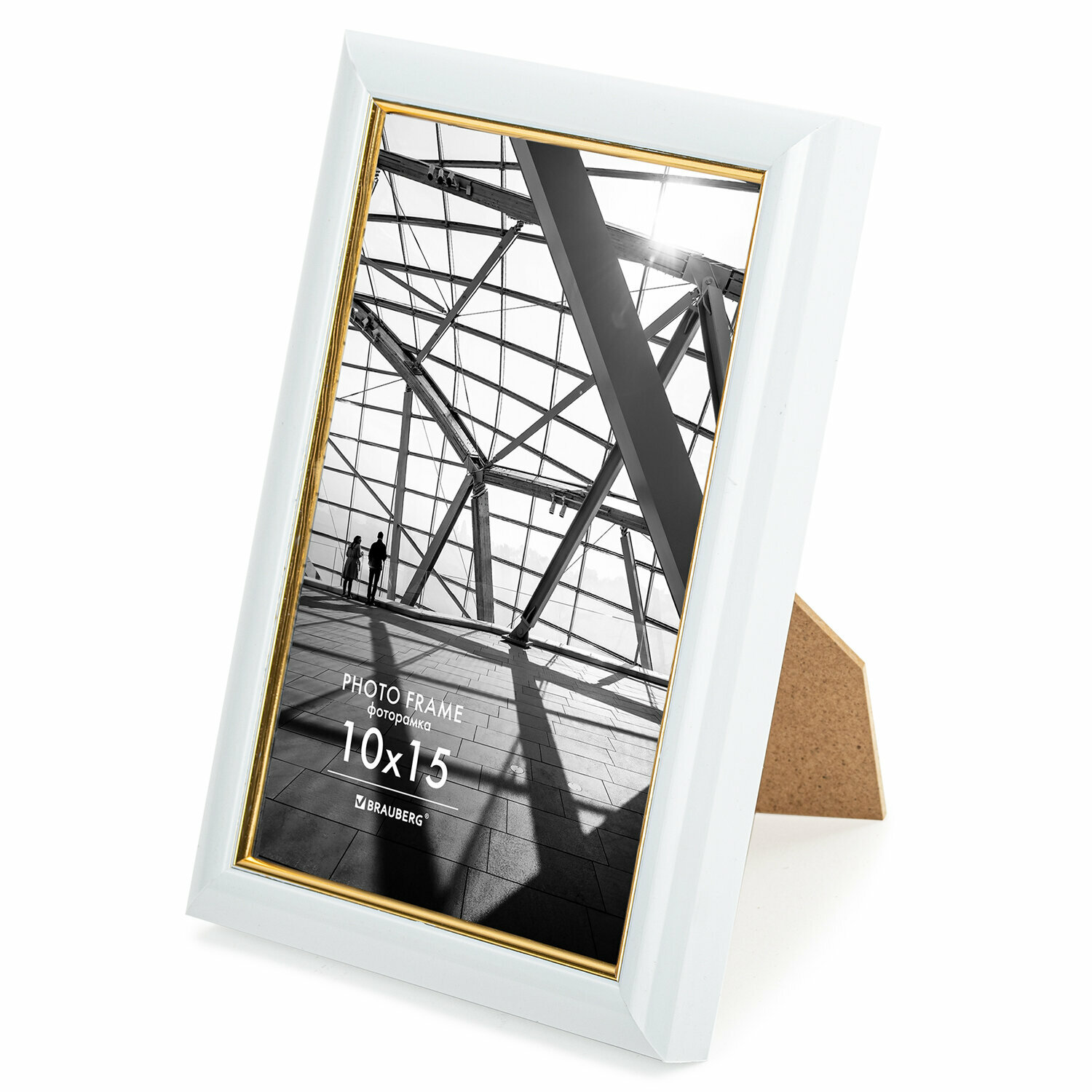 Купить Рамка (фоторамка) для фото, фотографий, картин, грамот на стену А6 10х15 см небьющаяся, багет 14,6 мм, пластик, Brauberg, белая/золото, 391235