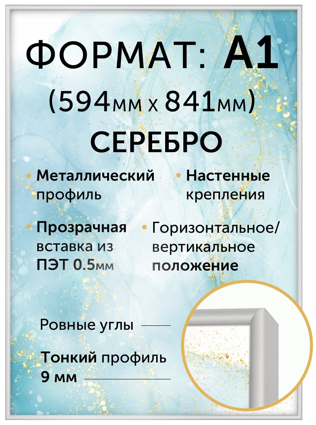 Металлическая рамка А1 (594х841 мм), Нельсон; цвет серебристый матовый интересное: