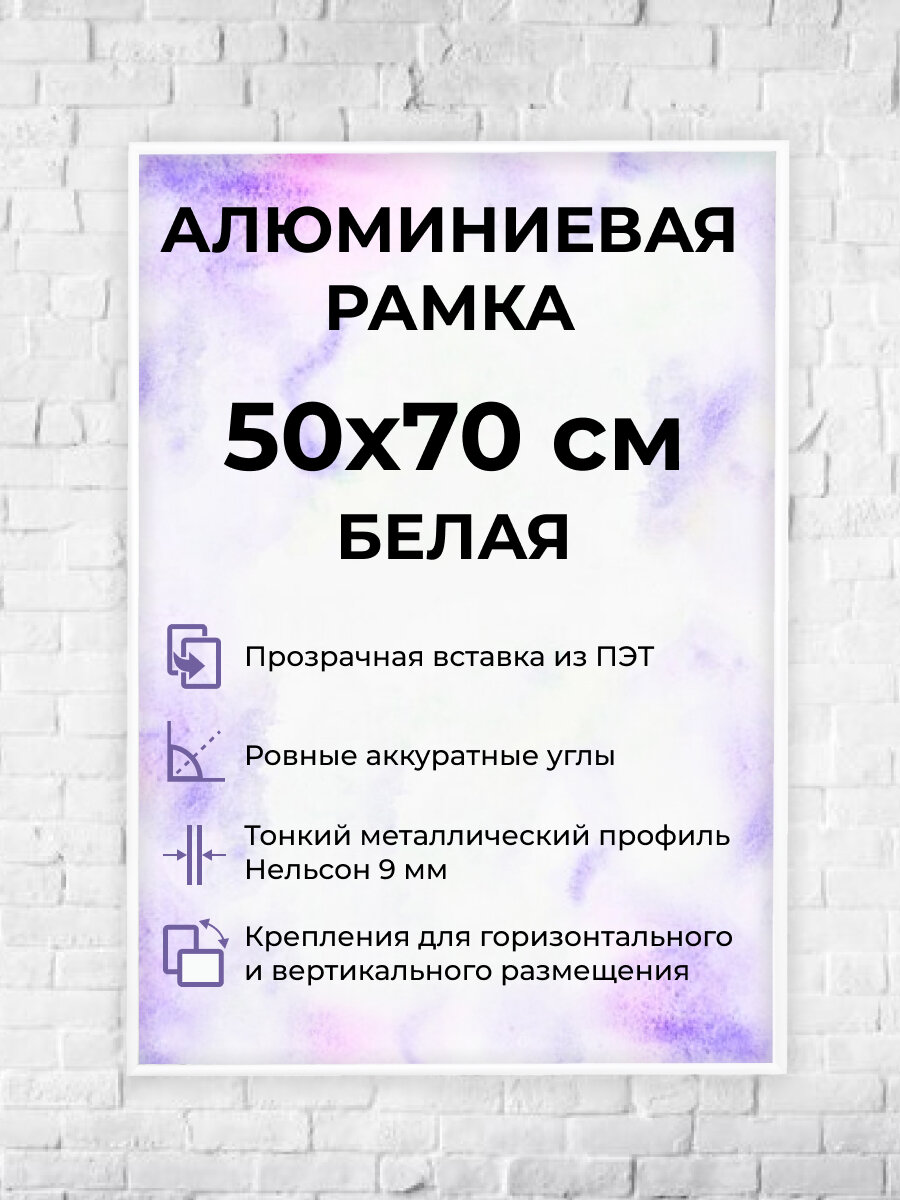 Фоторамка 50х70 см Нельсон алюминиевая, белая, для картин, постеров, пазлов, для дома и офиса интересное:
