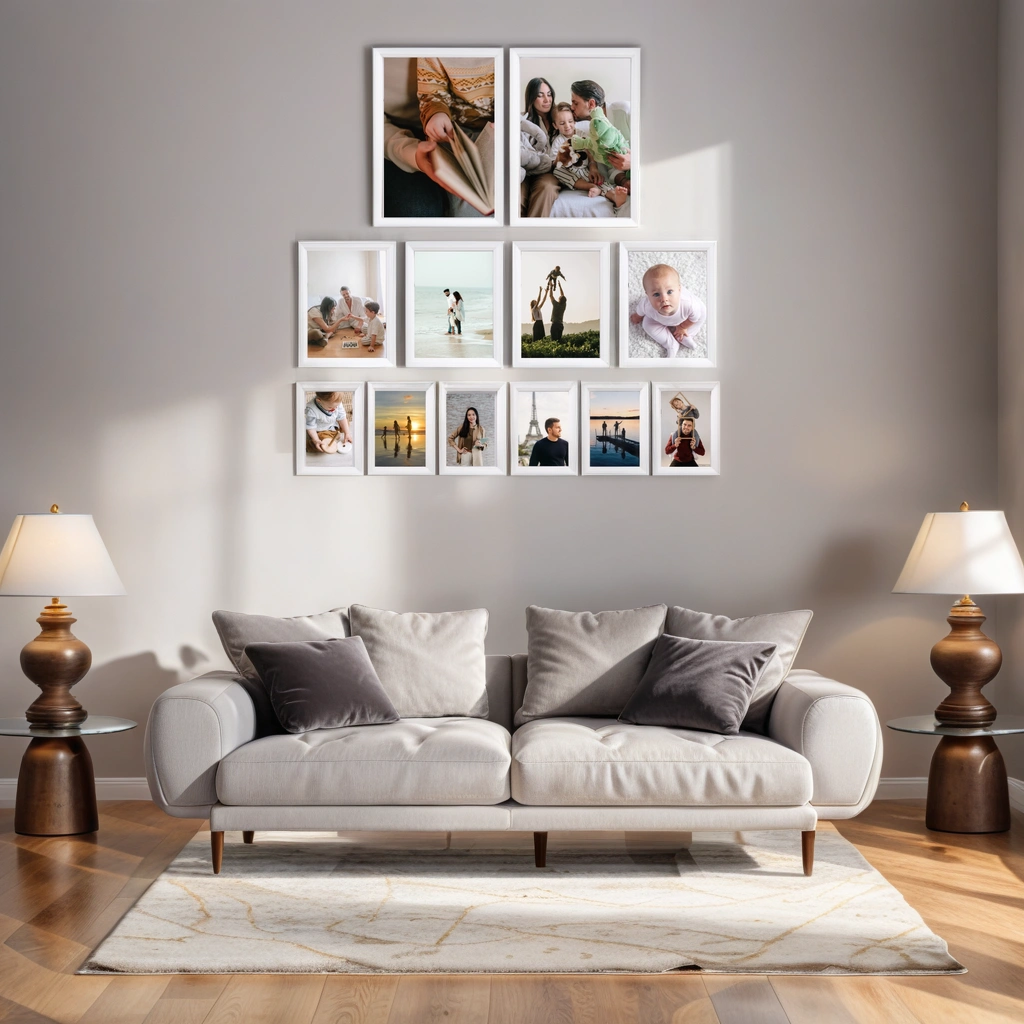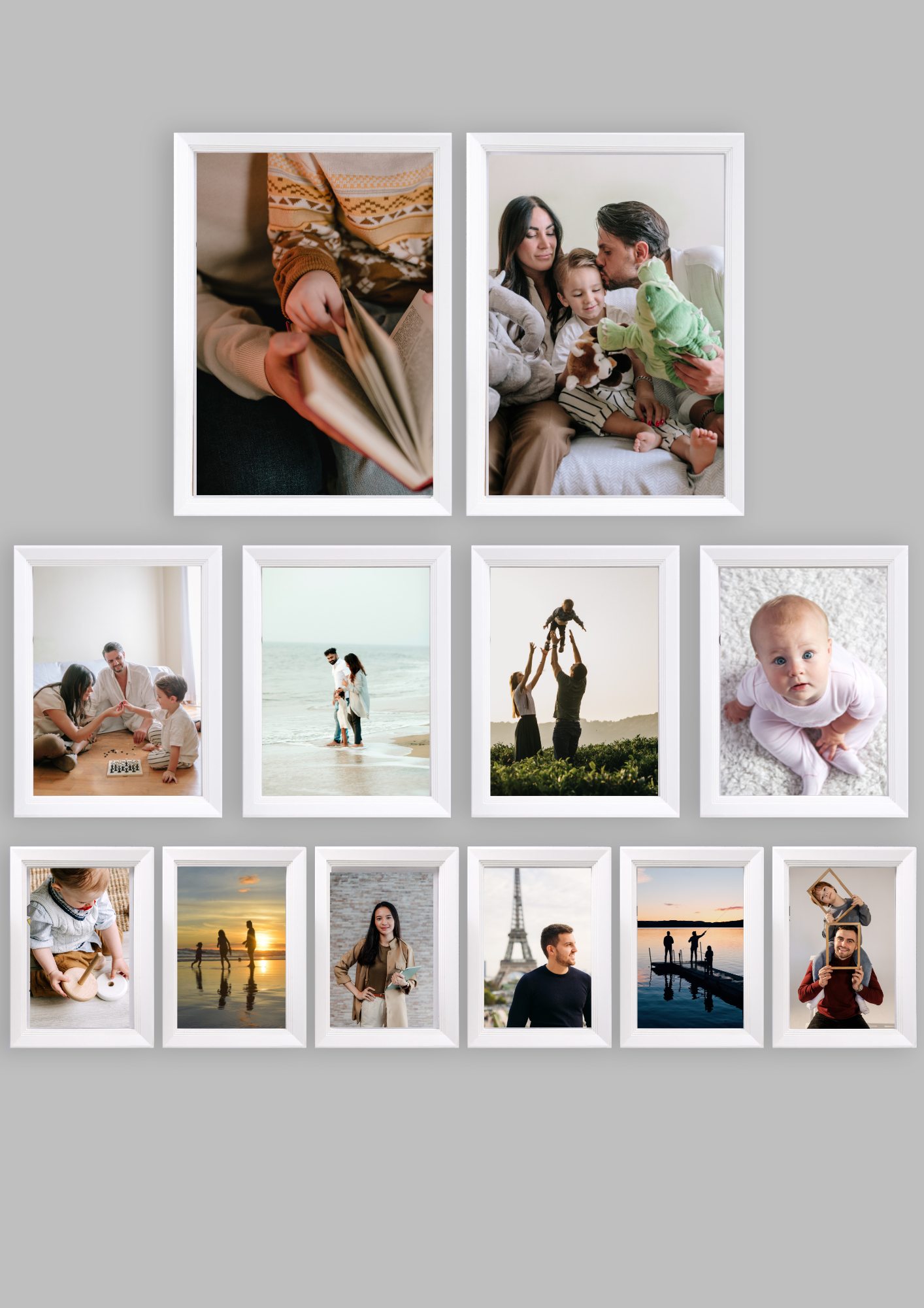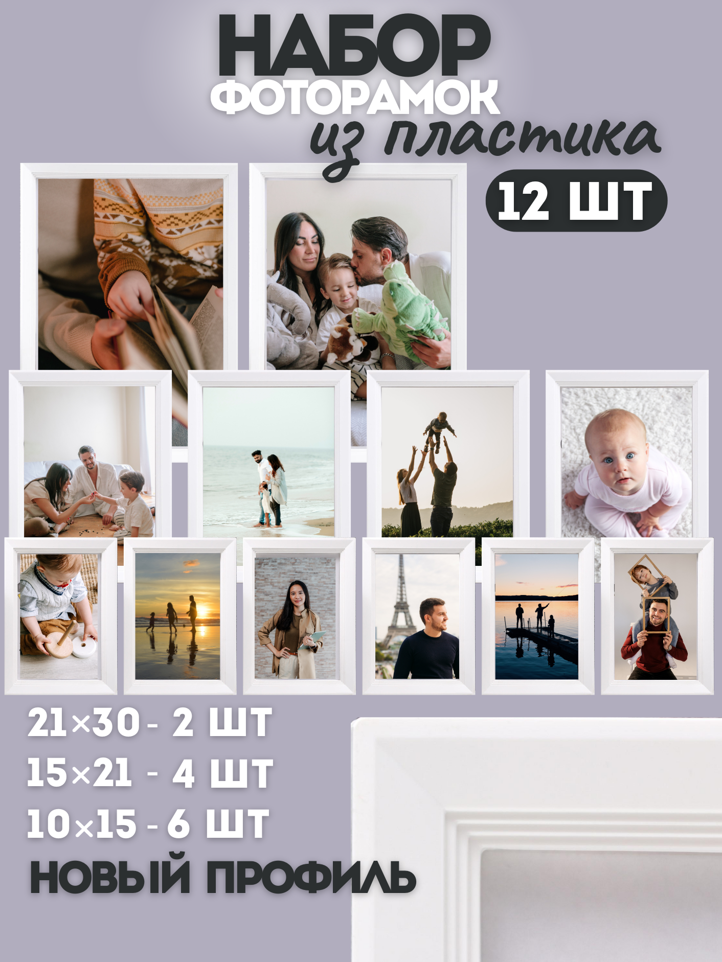 Рамки для фото на стену, коллаж, фоторамки набор, 21х30 см, 15х21 см, 10х15 см, белые, 12 шт