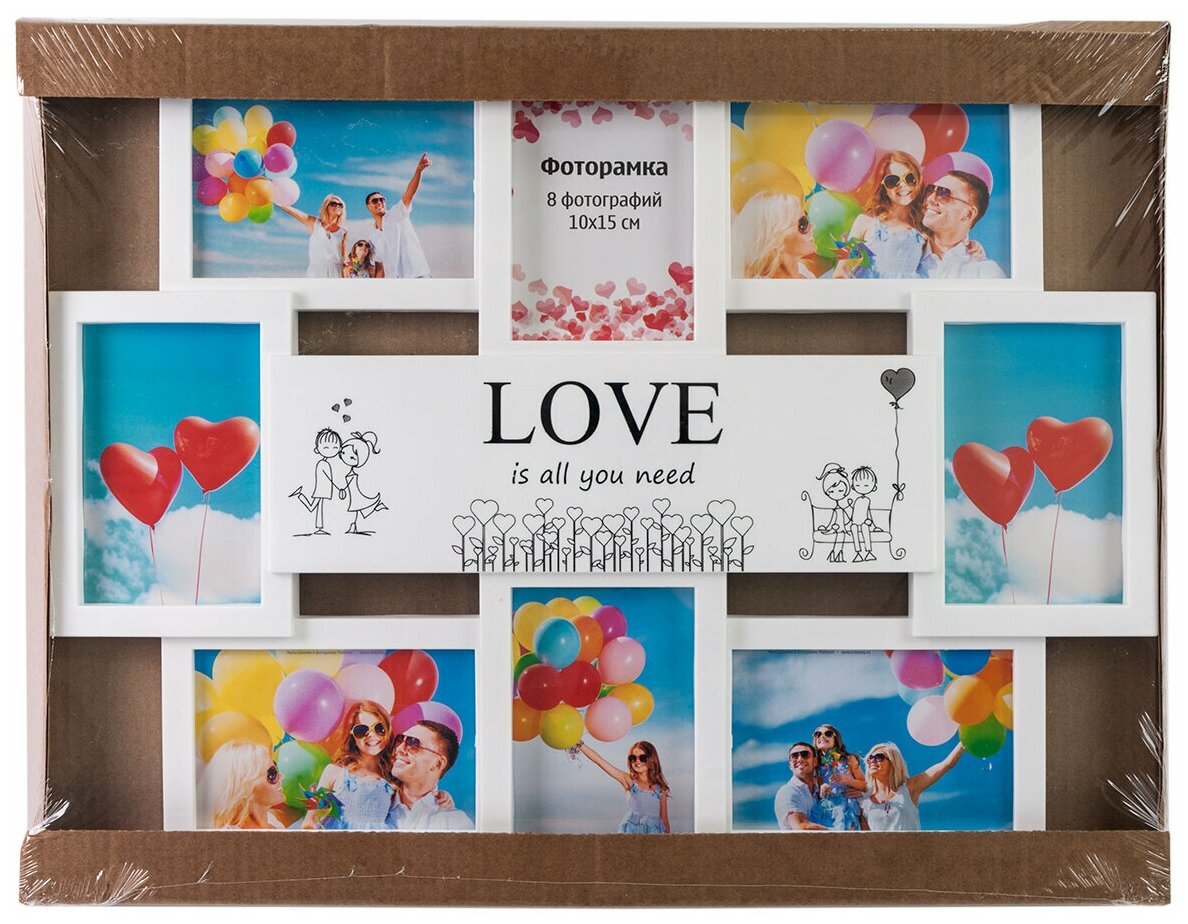 Мультирамка "LOVE" коллаж на 8 фото 10х15 см, белый