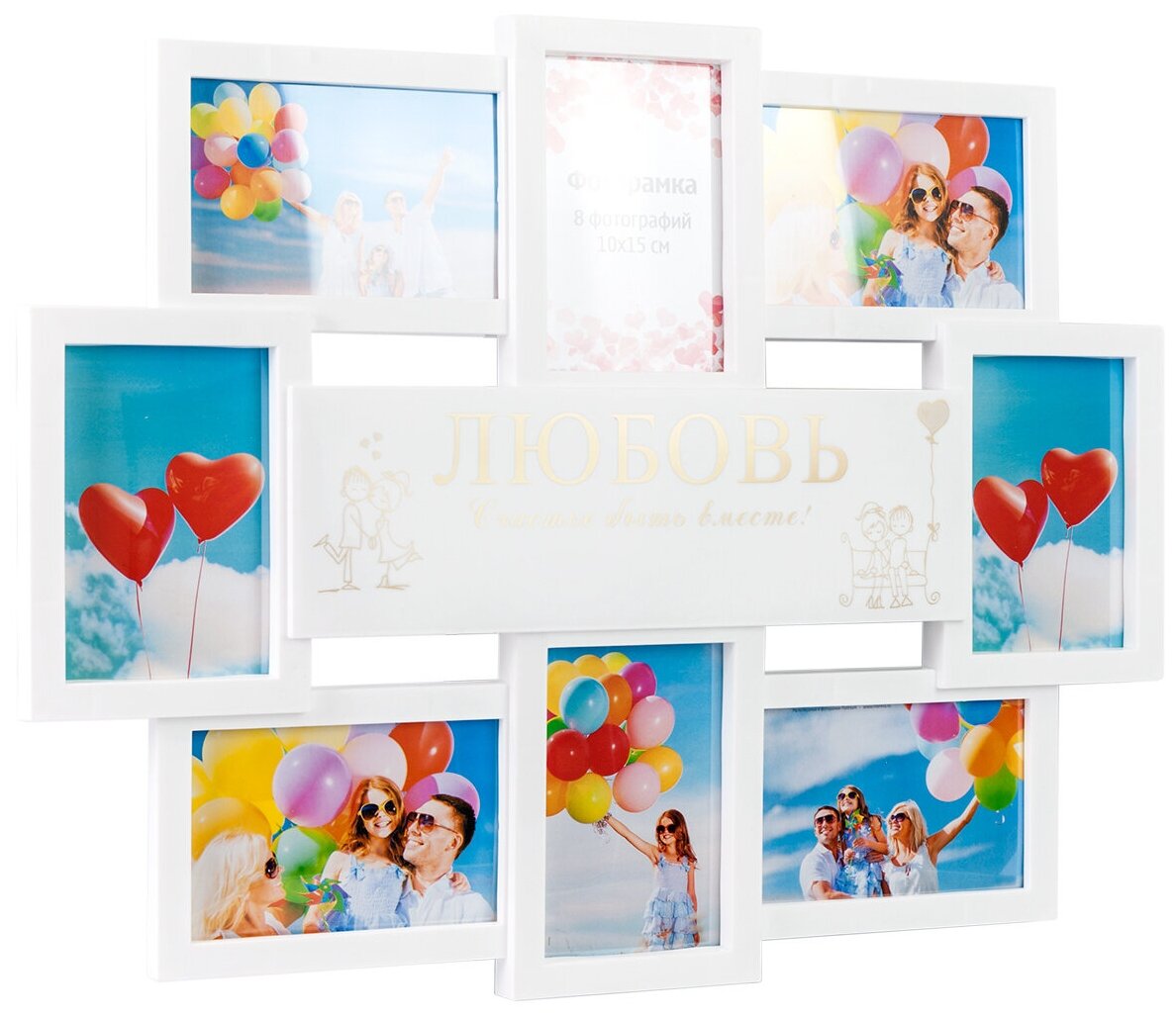 Мультирамка "LOVE" коллаж на 8 фото 10х15 см, белый