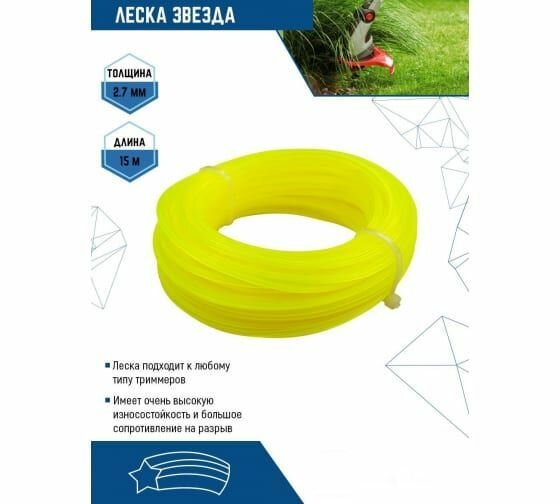 Леска для триммера VertexTools 2,4 мм 15 метров звездочка, прочный нейлон