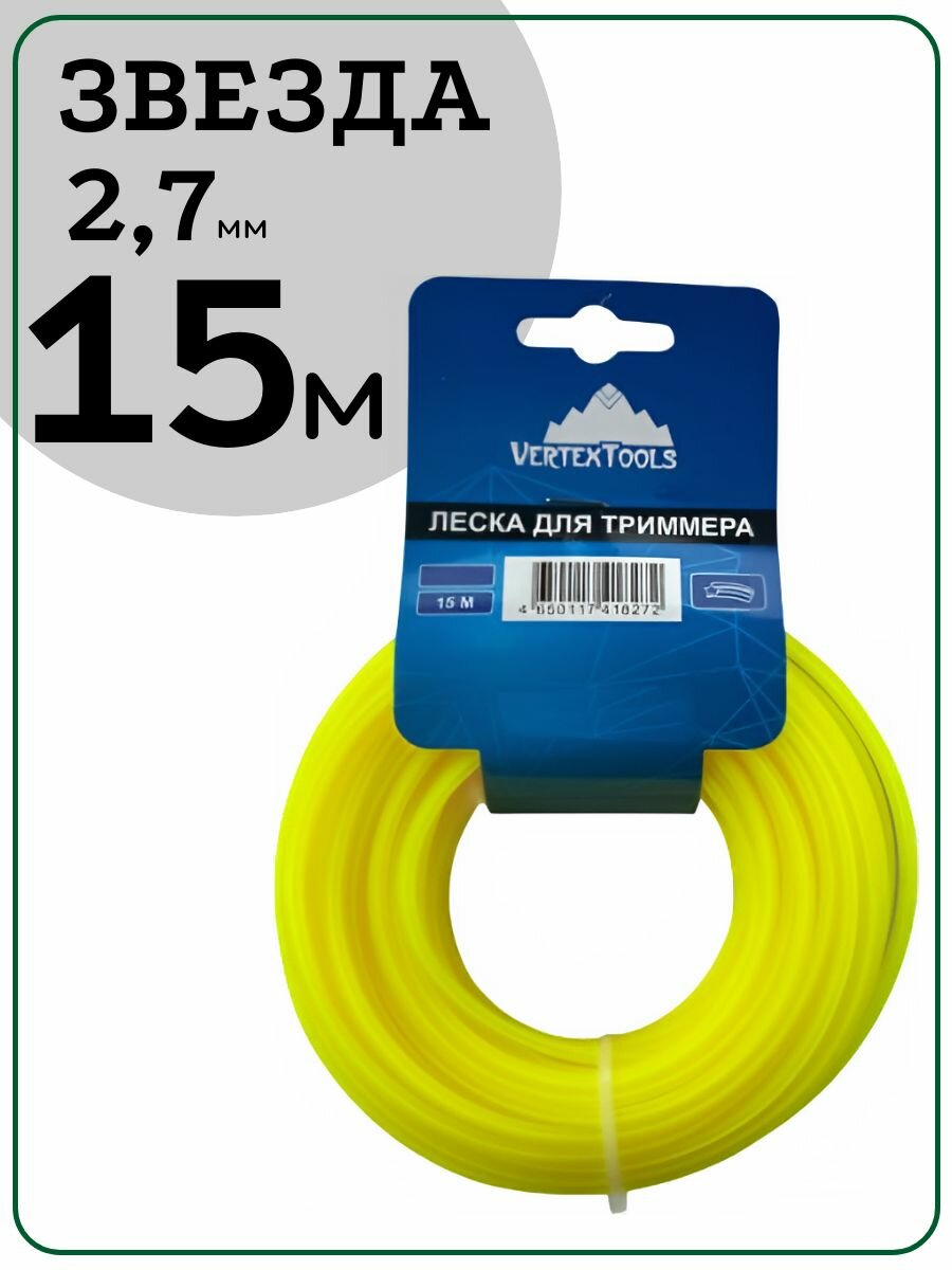 Купить Леска для триммера VertexTools 2,7 мм 15 м звездочка