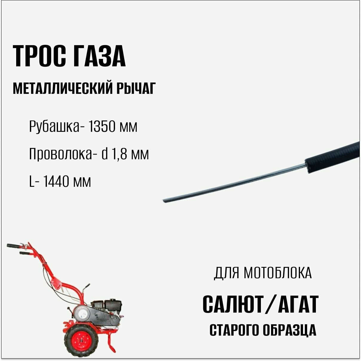 | Комплектация | Трос газа для мотоблока "Салют/Агат" (металлический рычаг) старого образца- 1шт |