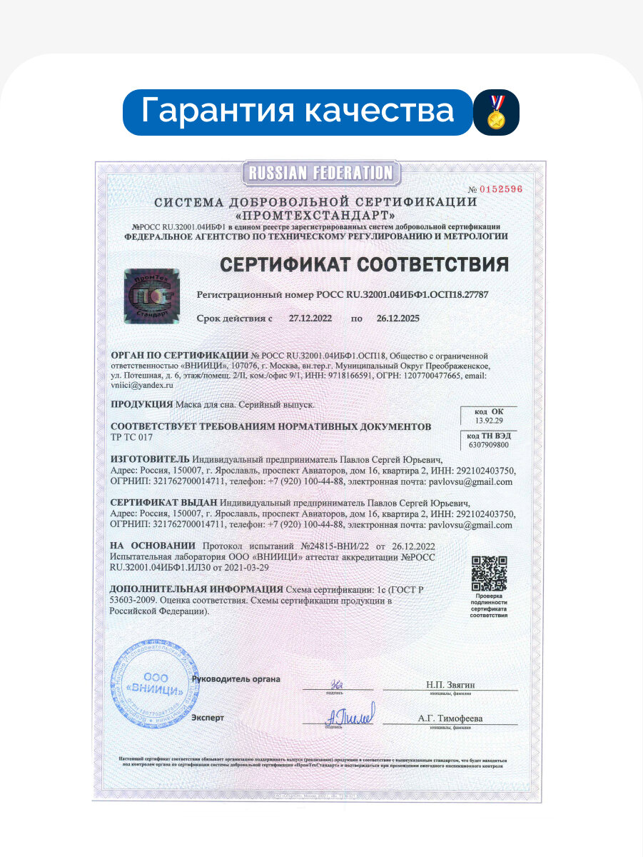 | Подробная комплектация | маска для сна - 1 шт, беруши, сумочка для хранения |