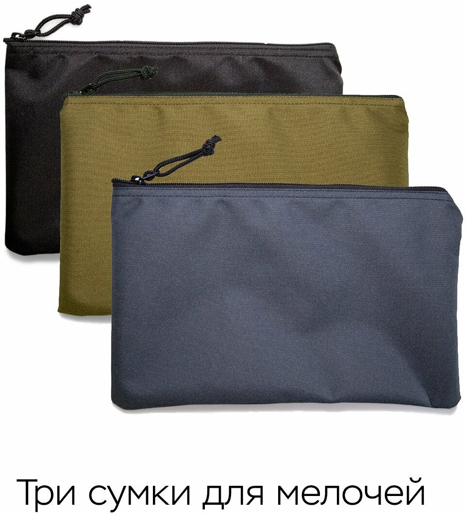 Набор непромокаемых сумок-конвертов на молнии для мелочей документов инструментов косметики 3 шт серый, черный, олива интересное: