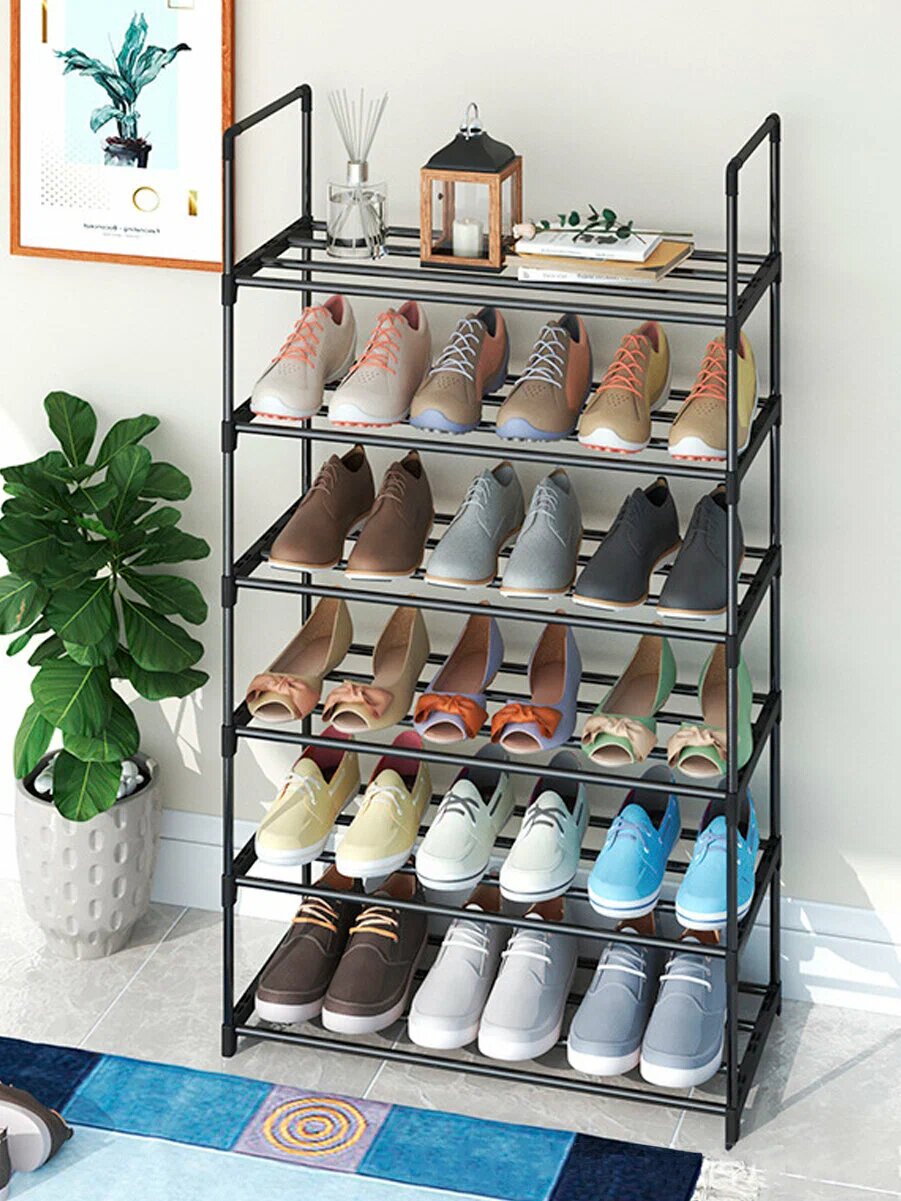 Обувница в прихожую, этажерка для обуви, металлическая, разборная, 66х29х107 см, черная интересное: