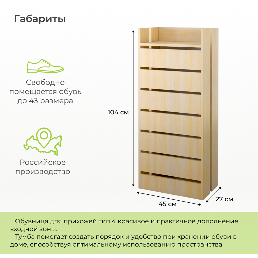 Обувница для обуви О-4 (450*1040*270) Династия для прихожей Дуб Молочный 06.028 интересное: