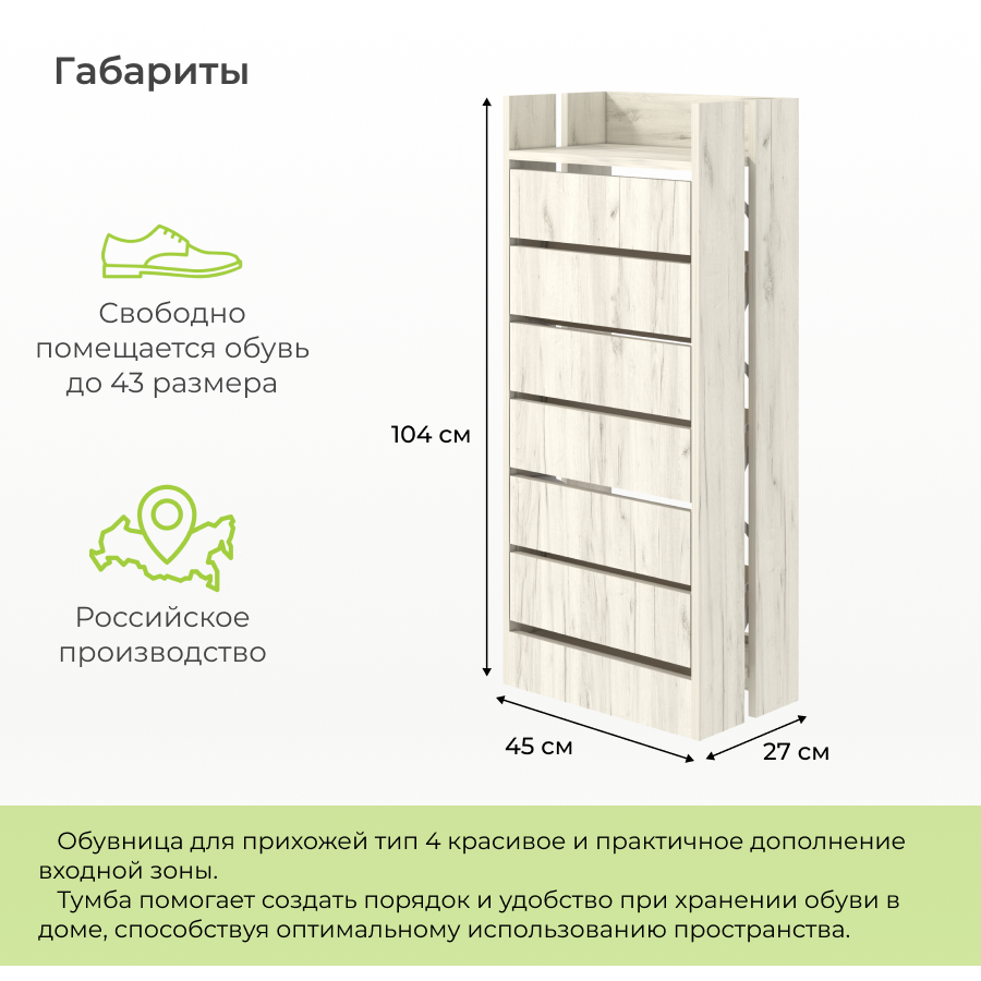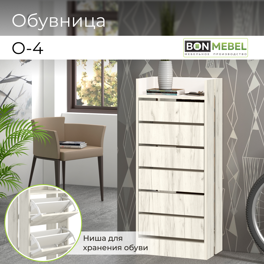 Обувница для обуви О-4 (450*1040*270) Династия для прихожей Дуб Крафт Белый 06.028 интересное: