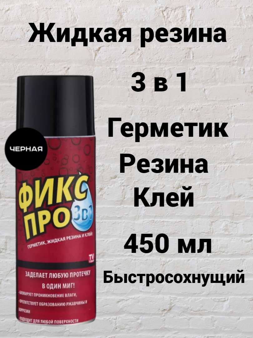 Ниже Вы можете прочитать отзывы на Клей герметик жидкая резина спрей Fix Pro в баллончике 3в1 черный фикс про, ознакомится с подробными характеристиками, посмотреть интересные обзоры и фотографии на Клей герметик жидкая резина спрей Fix Pro в баллончике 3в1 черный фикс про.