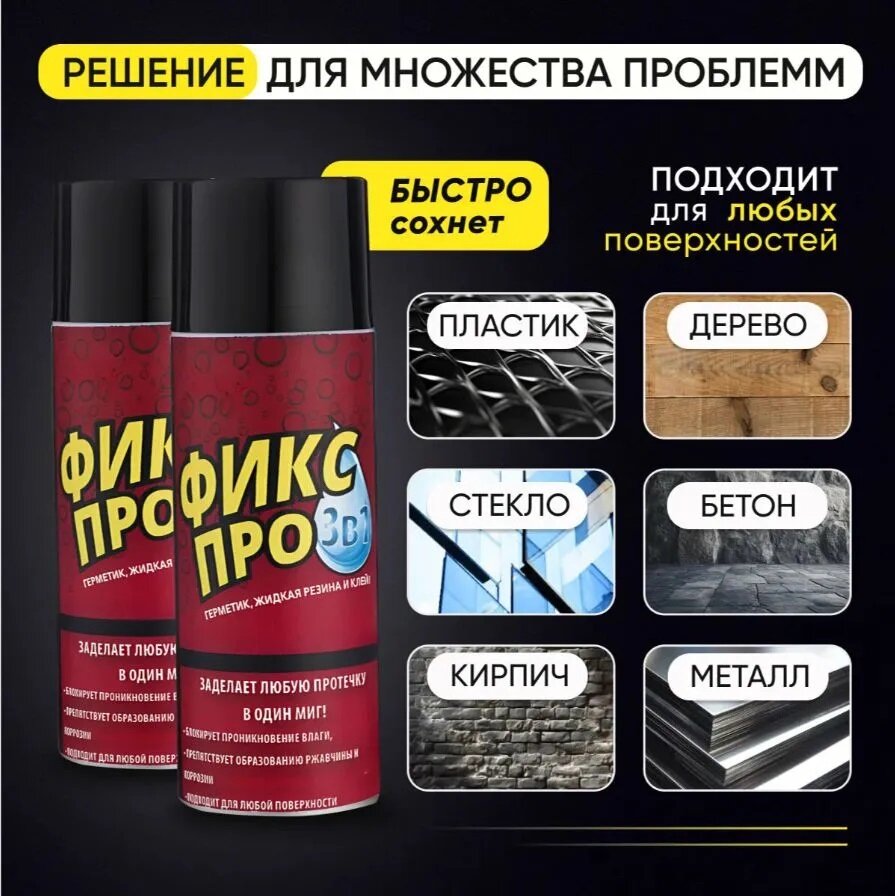 Клей герметик жидкая резина спрей Fix Pro в баллончике 3в1 черный фикс про интересное: