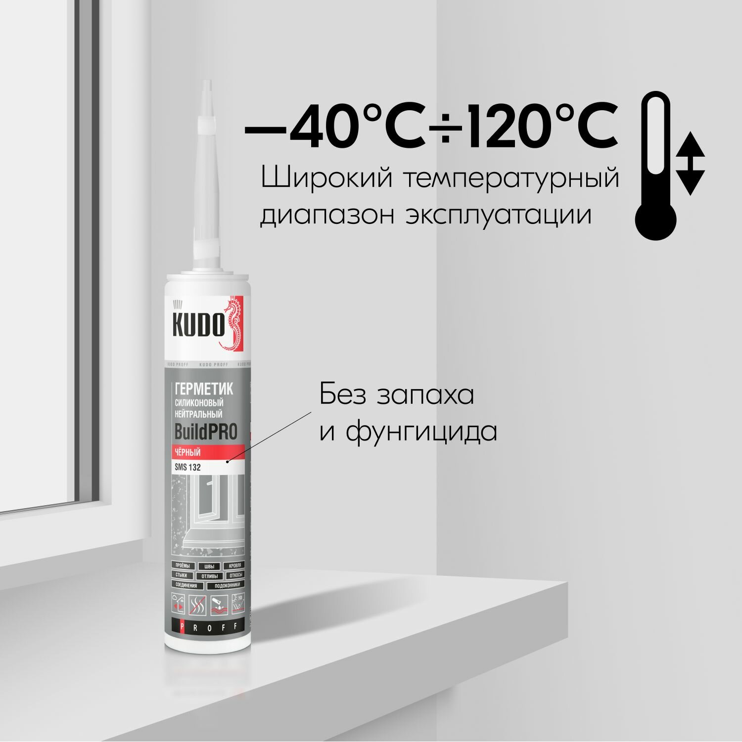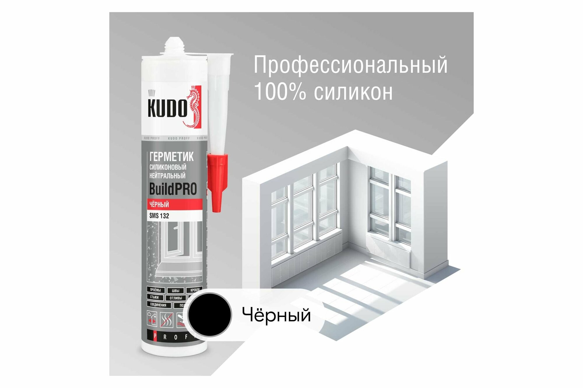 Купить Герметик силиконовый KUDO PROFF BUILDPRO нейтральный SMS-132, 280 мл, чёрный