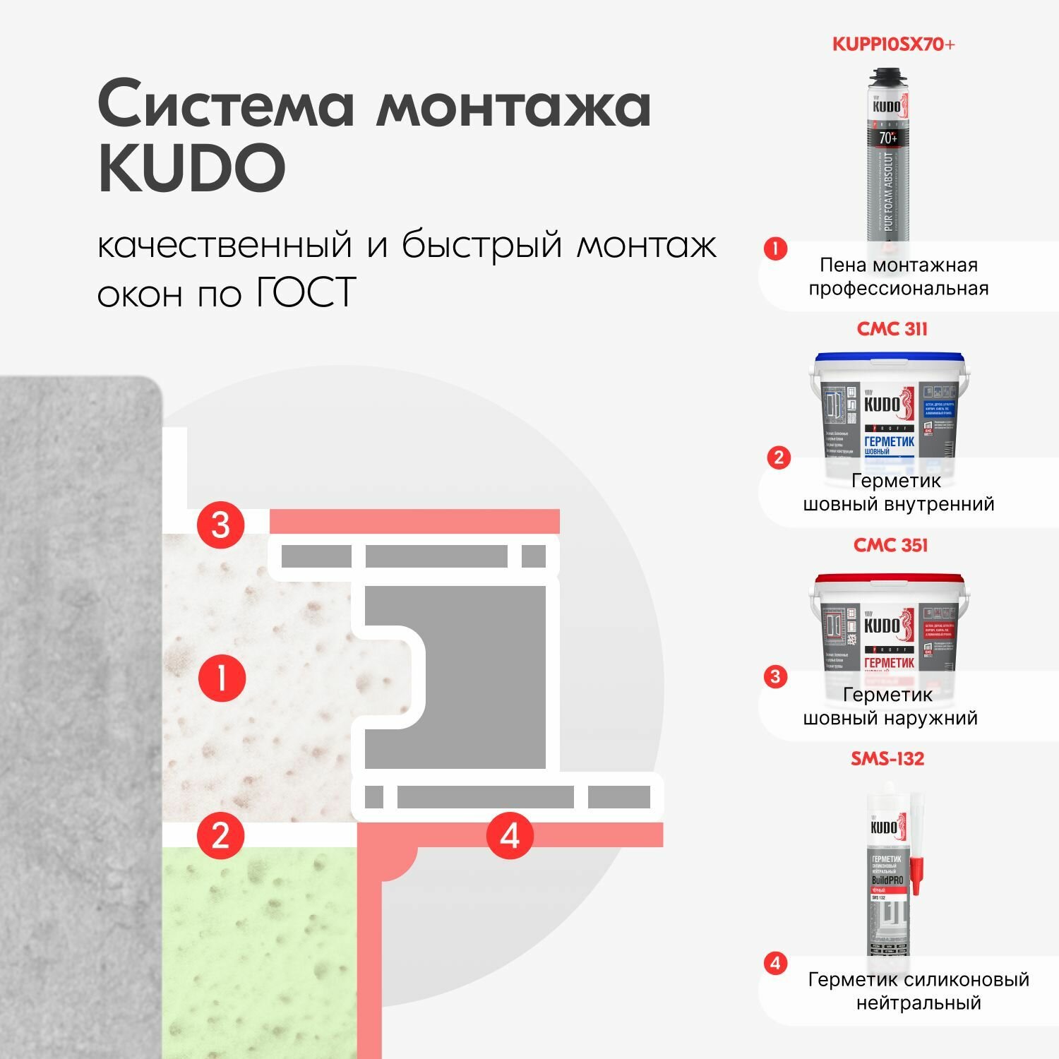 KUDO PROFF SMP-351, Герметик акриловый паропроницаемый шовный наружный ,белый,600 мл