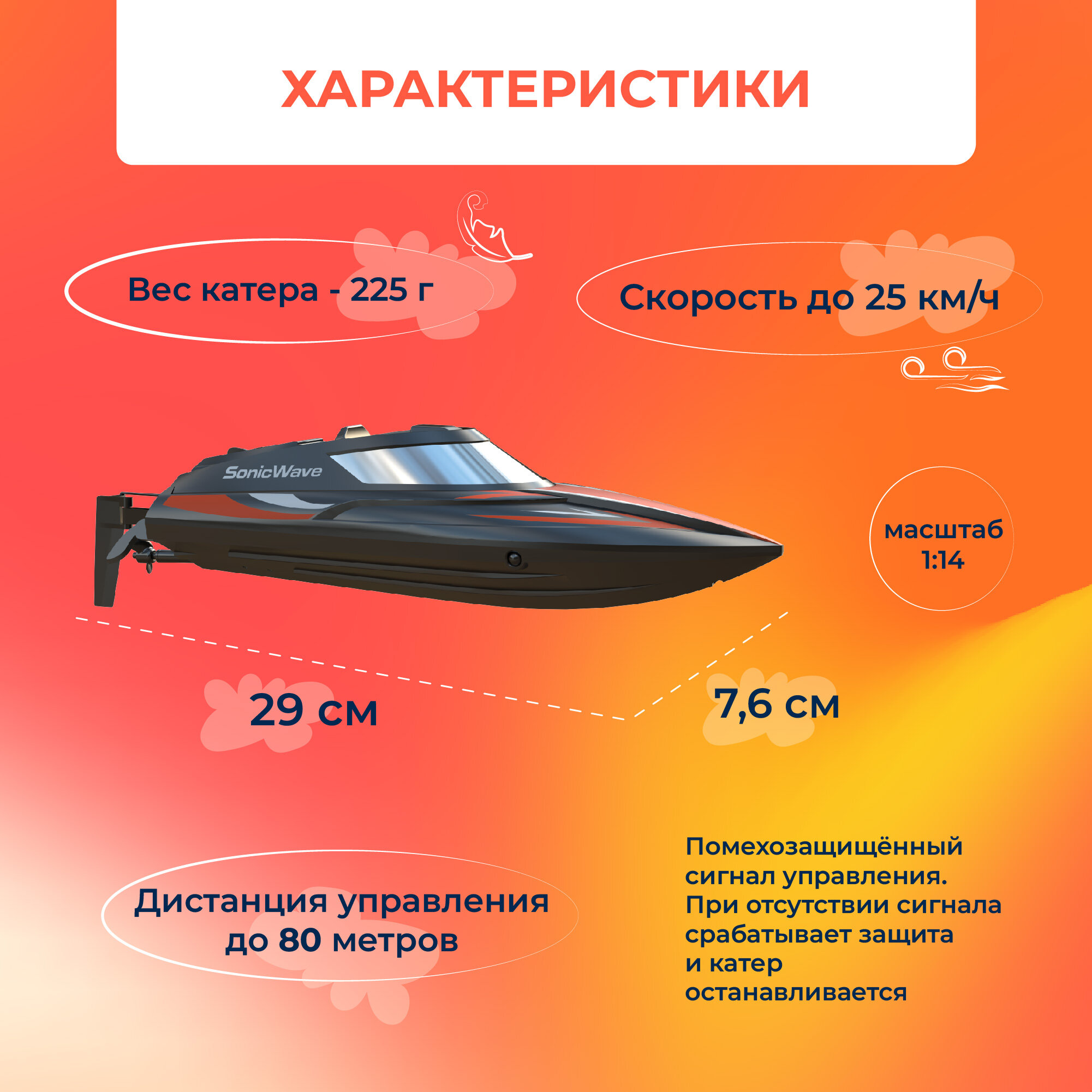 Катер на радиоуправлении HIPER Sonicwave HBT-0030, 1:14, 29 см, черный 25 км\ч интересное: