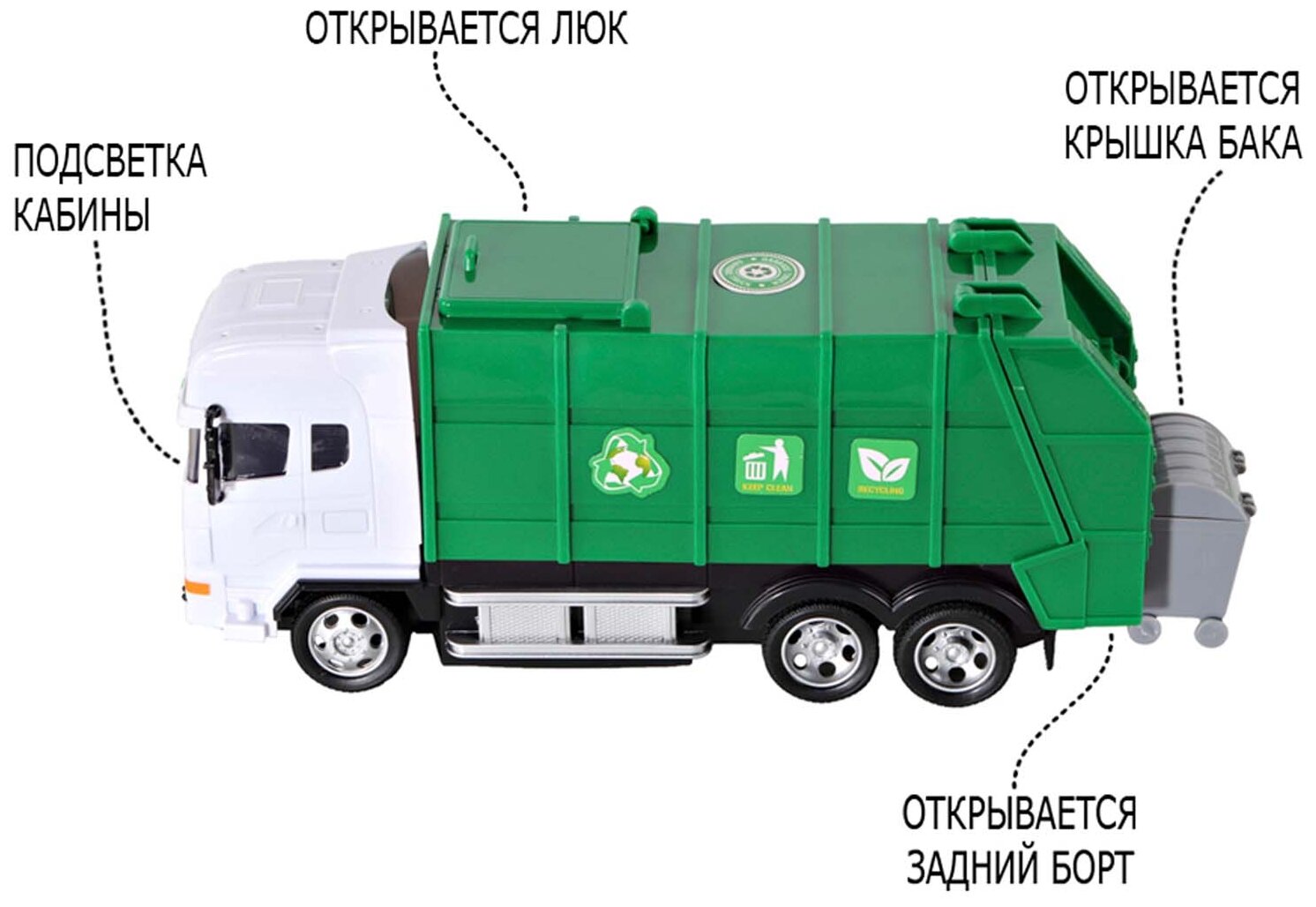 | Дополнительная информация | вручную поднимается люк на крыше, задний борт кузова и крышка мусорного бака; частота: 27 Гц; привод: 2WD |