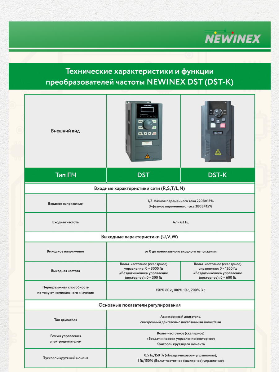 Ниже Вы можете прочитать отзывы на Частотный преобразователь Newinex DST-7.5-K преобразователь частоты на 7.5 кВт вход 3ф х 380 В выход 3ф х 380 В, ознакомится с подробными характеристиками, посмотреть интересные обзоры и фотографии на Частотный преобразователь Newinex DST-7.5-K преобразователь частоты на 7.5 кВт вход 3ф х 380 В выход 3ф х 380 В.