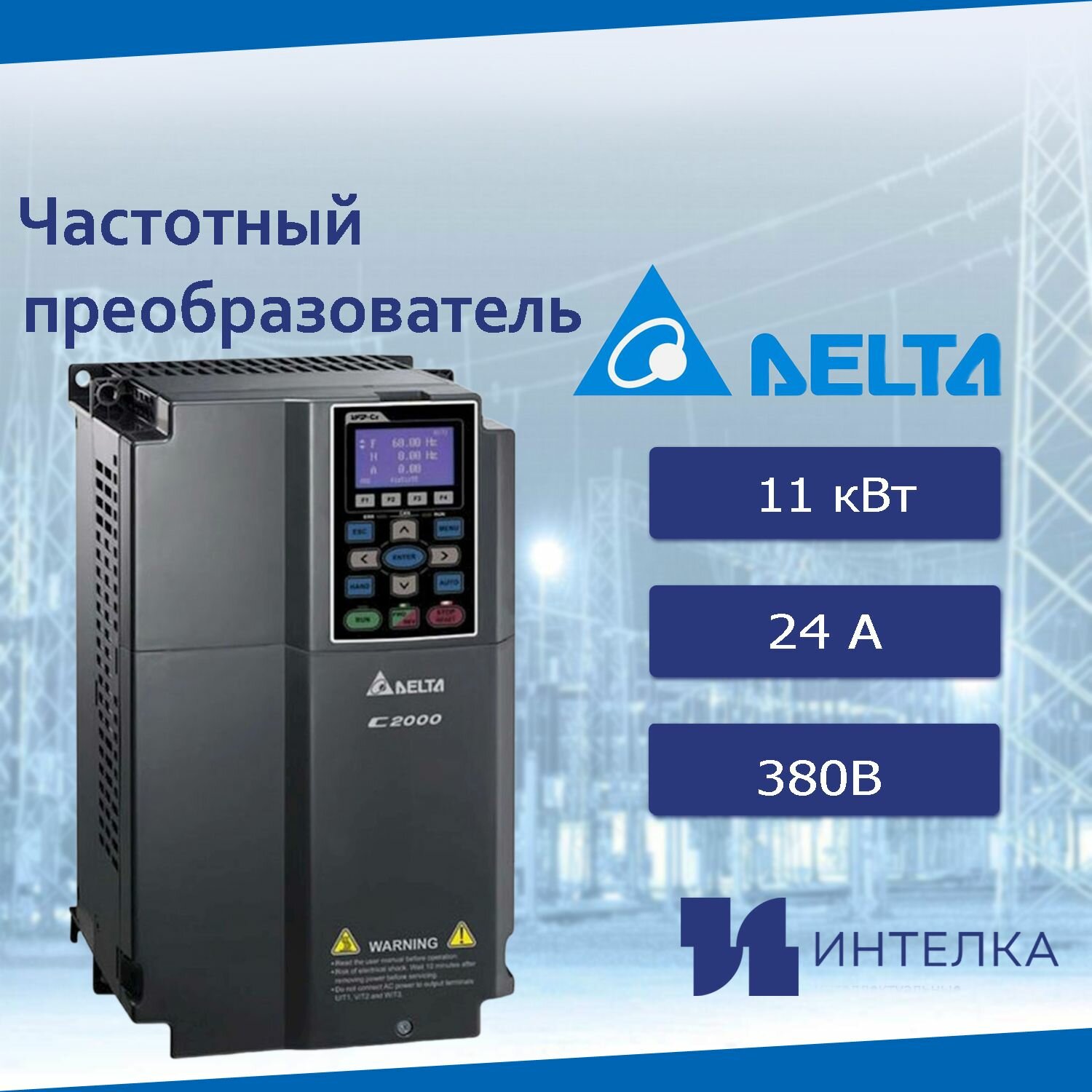 Частотный преобразователь (11кВт 3ф 400В), встроенный тормозной ключ VFD110C43A-21, шт интересное: