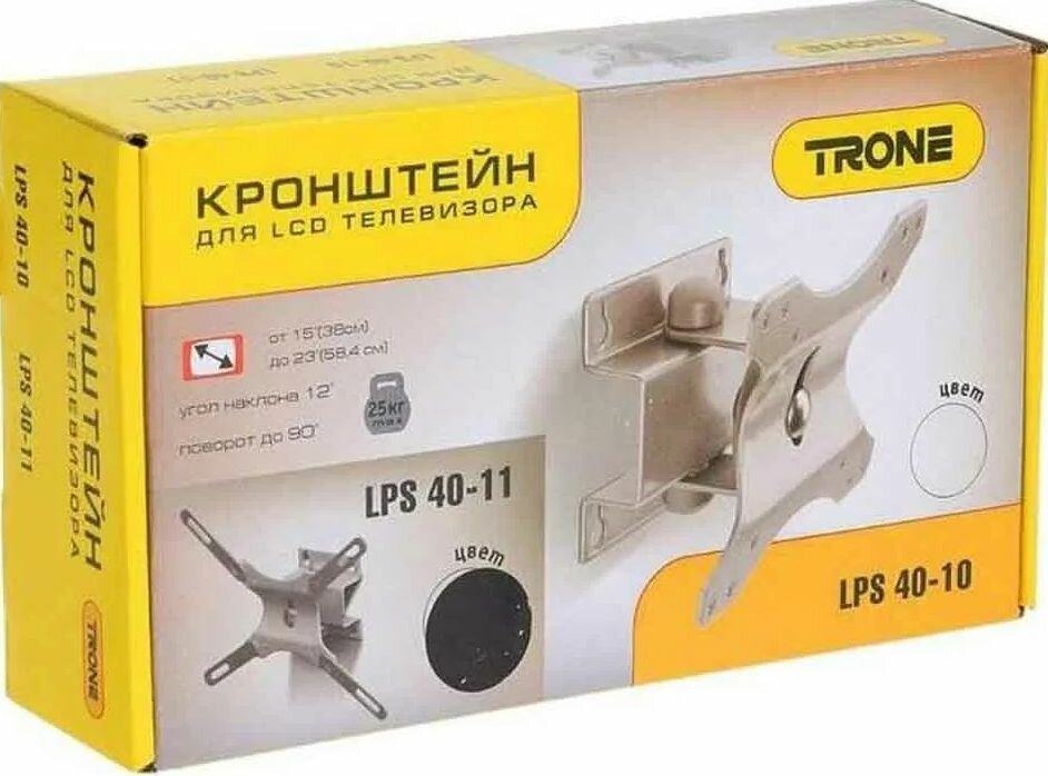 Кронштейн Trone LPS 40-11, для ТВ, наклонно-пов, 15"-26", до 25 кг, 86 мм, чёрный