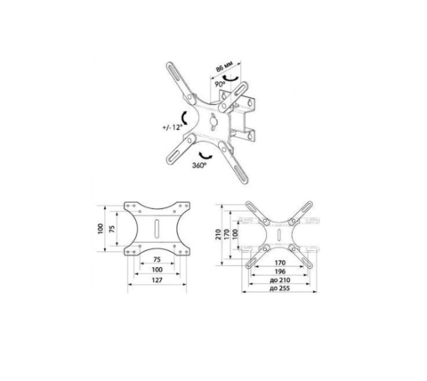 | Плюсы: | Подходит для всех размеров крепления телевизора. Поворотные углы по вертикали и горизонтали, нормально. |