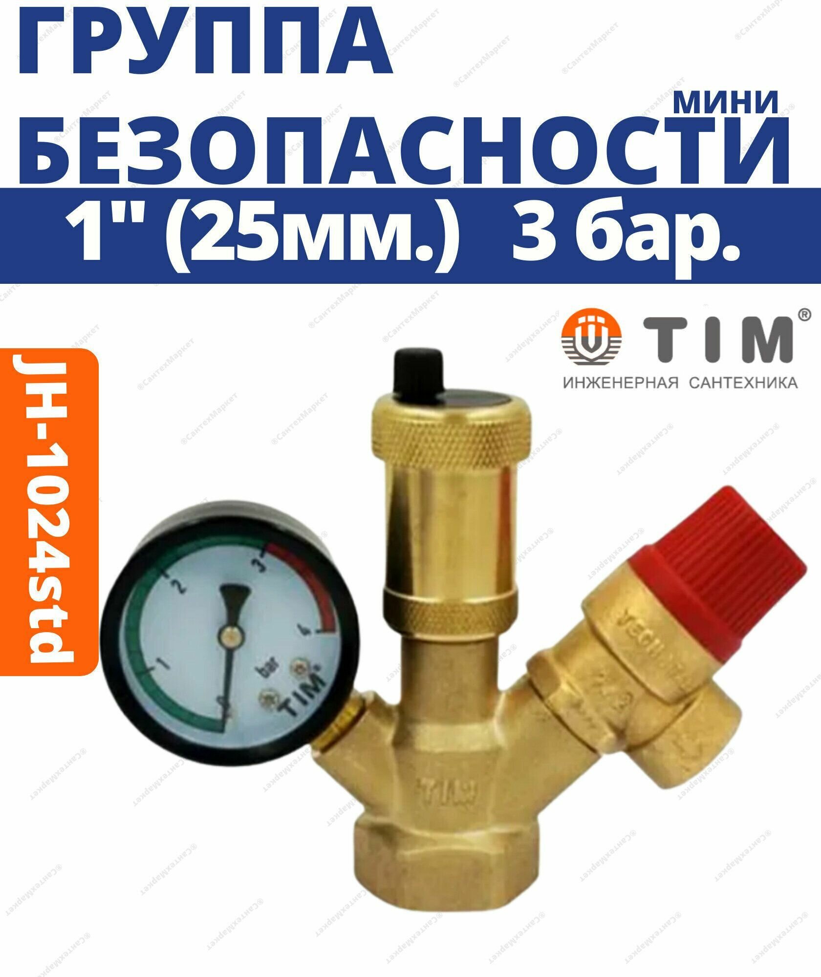 Группа безопасности для котла, мини эконом, без накидной гайкой 1"-3 бар TIM арт. JH1024-3std