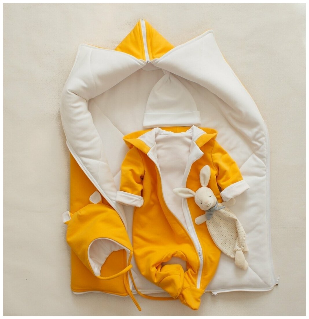 СохранитьДемисезонный трикотажный детский комплект для новорожденного 62 размер (от 0-3мес), 3 предмета, желтый интересное: