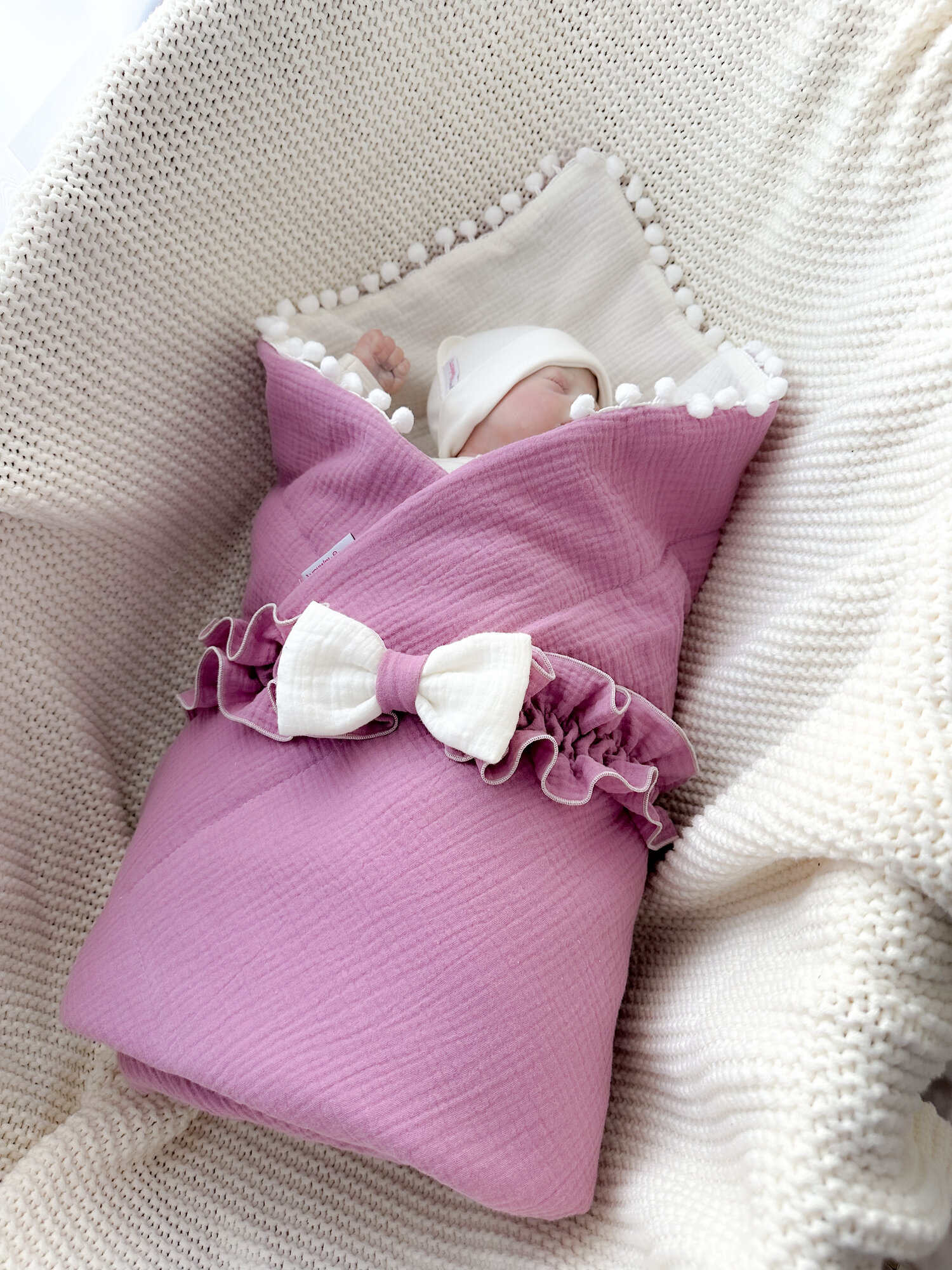 СохранитьКонверт-одеяло муслиновое летнее, малина + бант интересное: