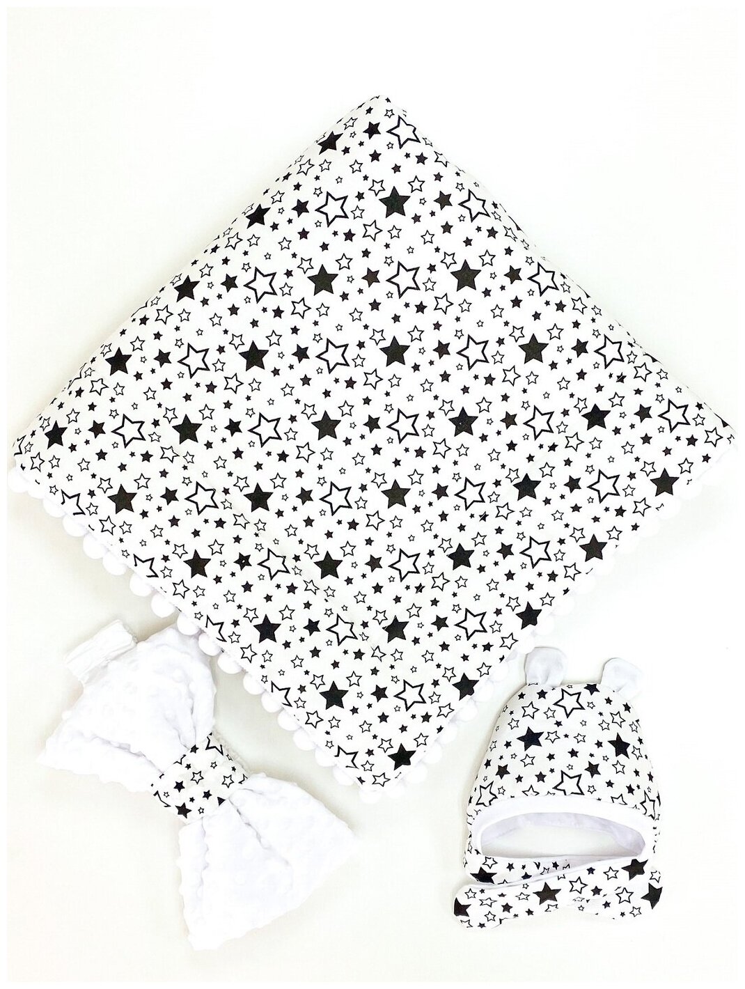 Купить Конверт-одеяло "Звездопад", черный + белый плюш +бант +шапочки, демисезон