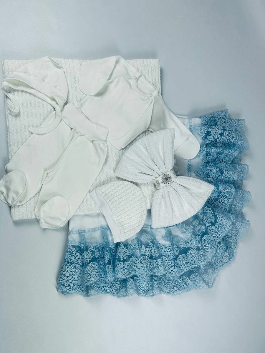 | Комплектация | Одеяло, уголок-пеленка, бант-резинка, шапочка, чепчик, распашонка, ползунки |