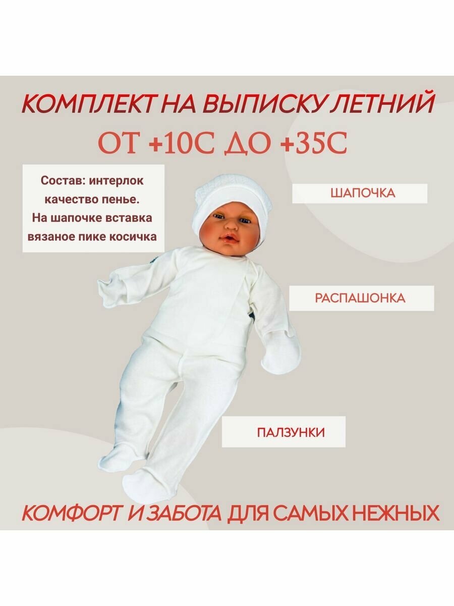 Конверт на выписку летний молочный бежевый и одежда для новорожденного