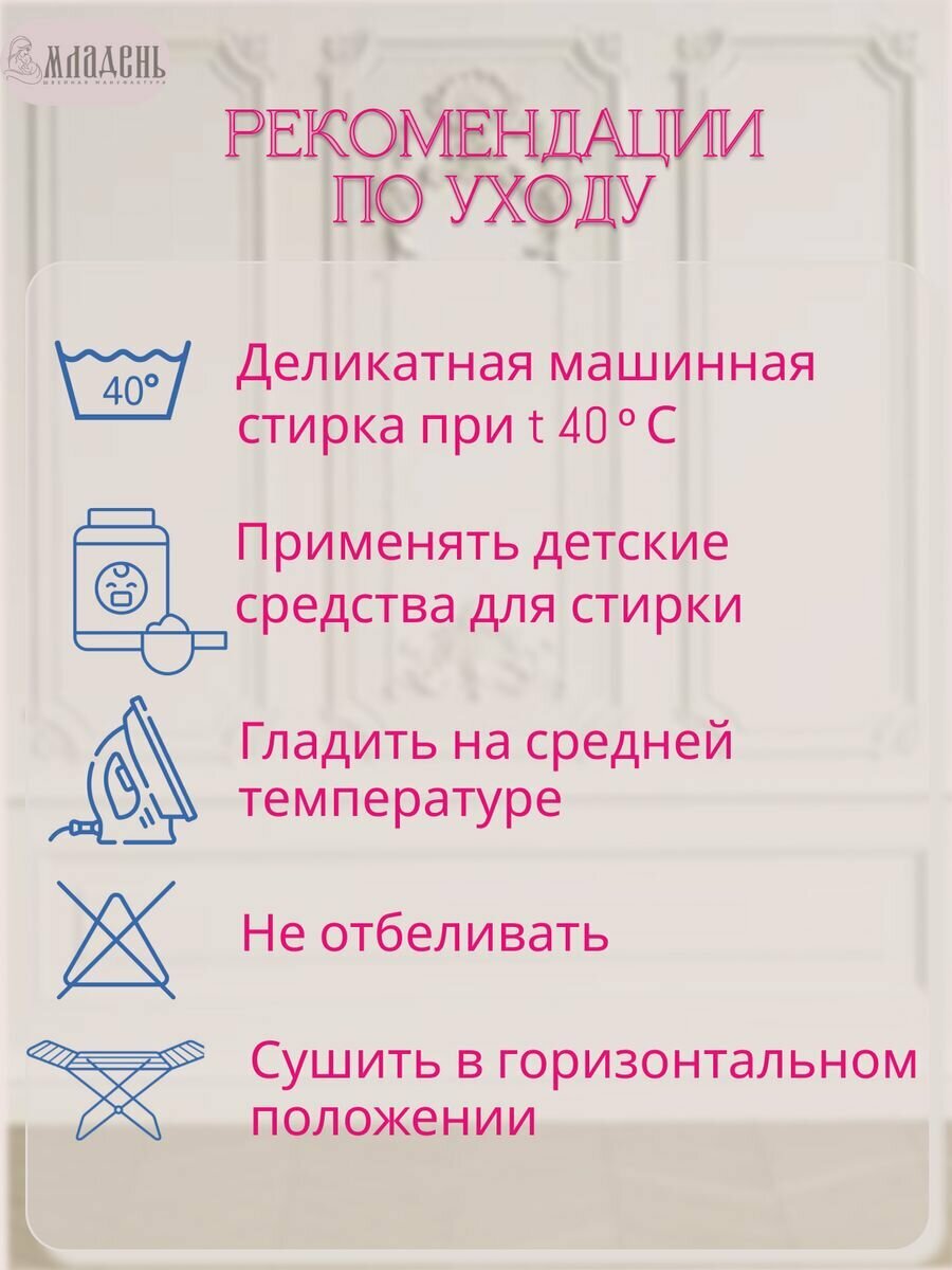 | Комплектация | Одеяло, уголок-пеленка, бант-резинка, шапочка, чепчик, распашонка, ползунки |