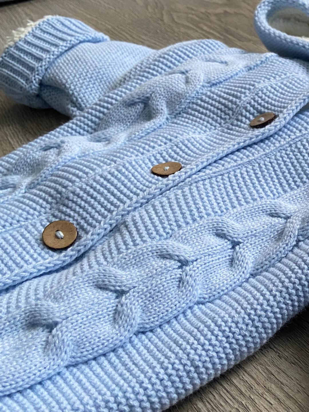 Конверт для новорожденного на выписку теплый вязаный 8 предметов в роддом безе