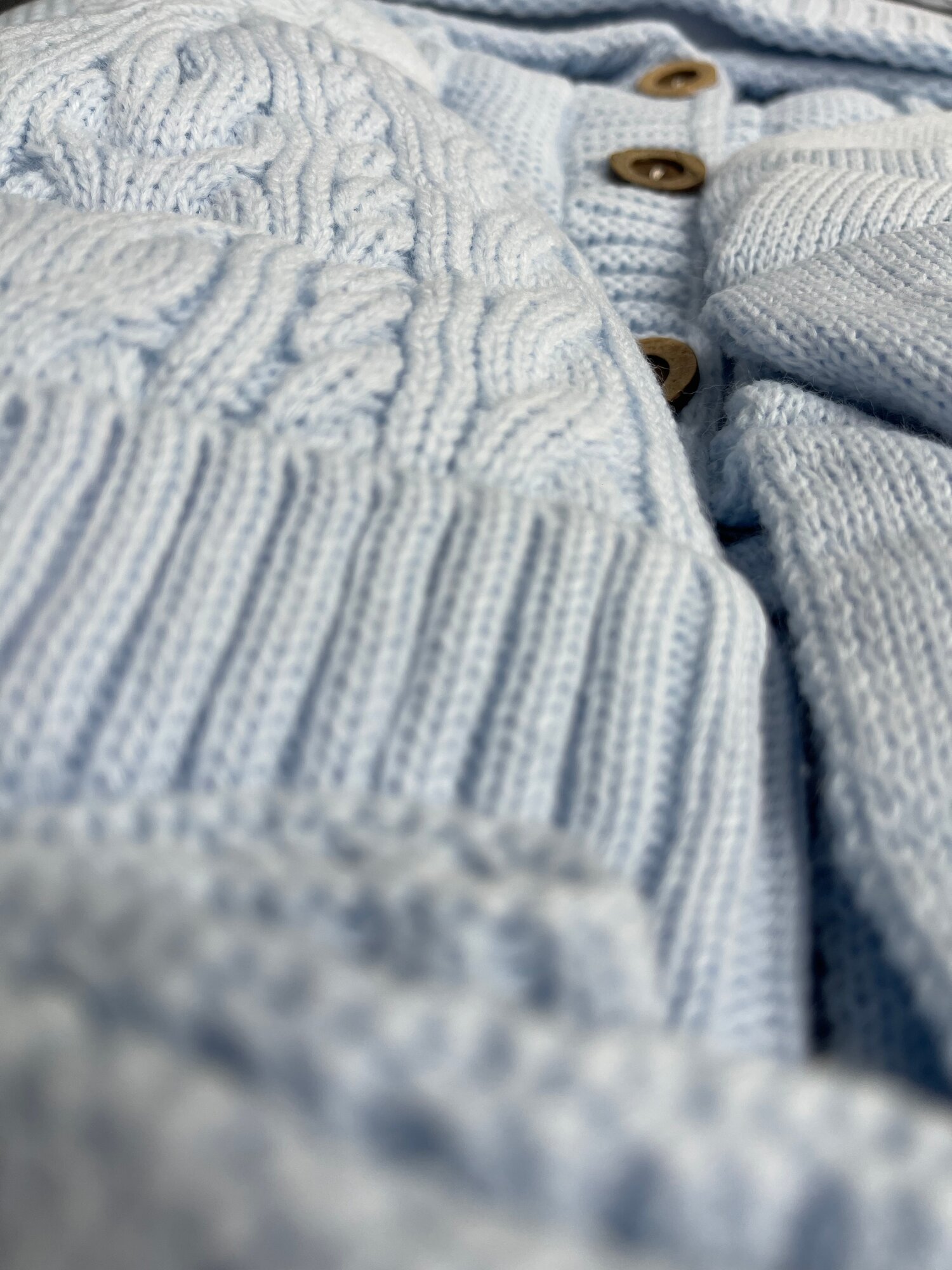 Конверт для новорожденного комплект вязаный 8 предметов на выписку вязаный В роддом подарочный синий