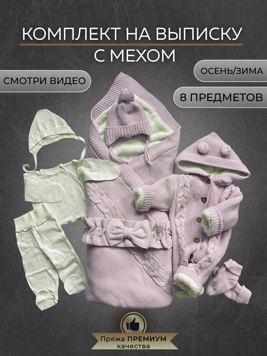 Конверт для новорожденного на выписку теплый вязаный 8 предметов в роддом безе