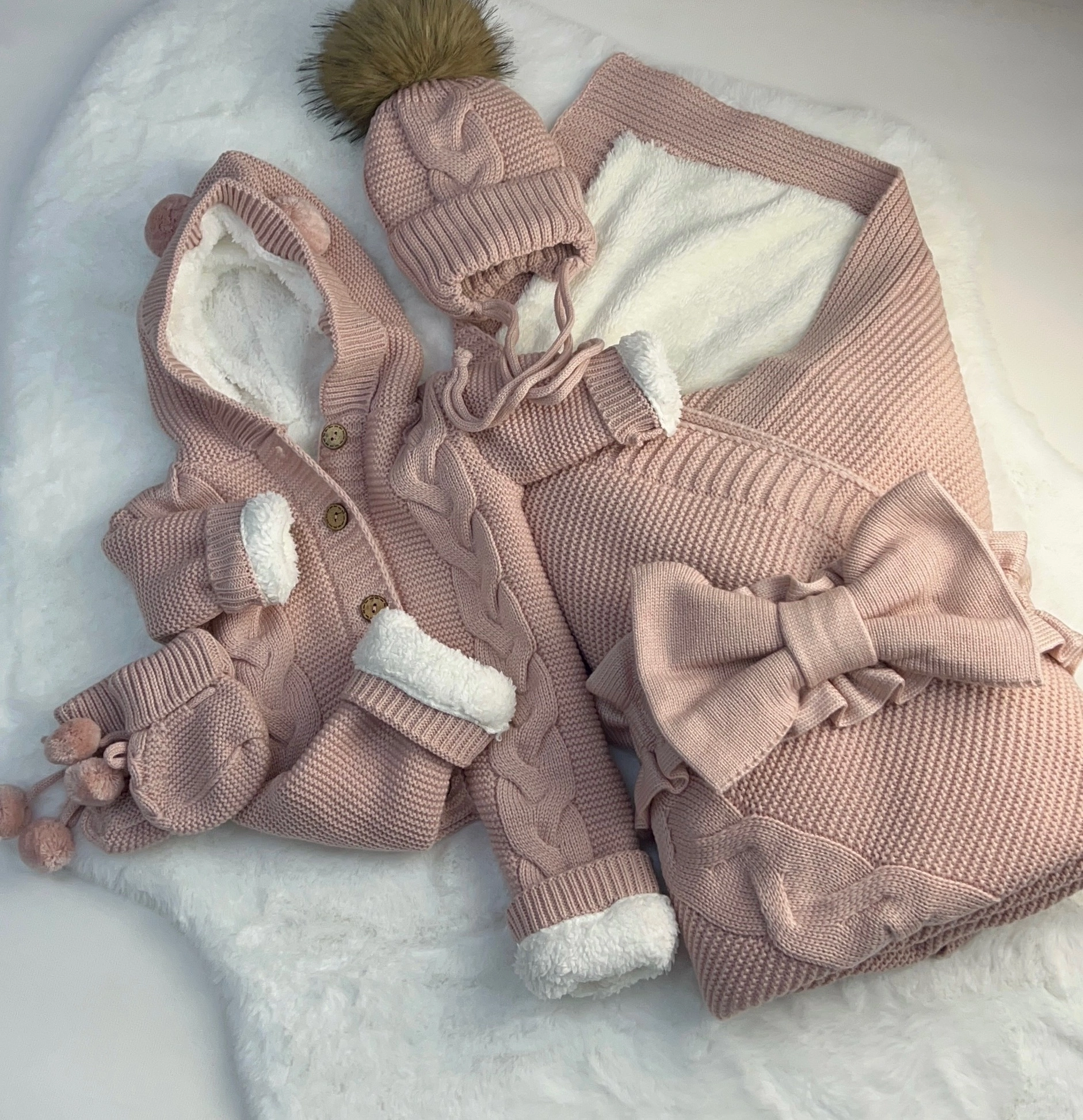 Купить Конверт для новорожденного на выписку теплый вязаный 8 предметов в роддом роза