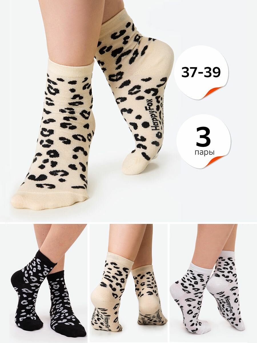 Набор женских носков 3 пары Happy Fox HFET3002Lлеопард,микс 25-27
