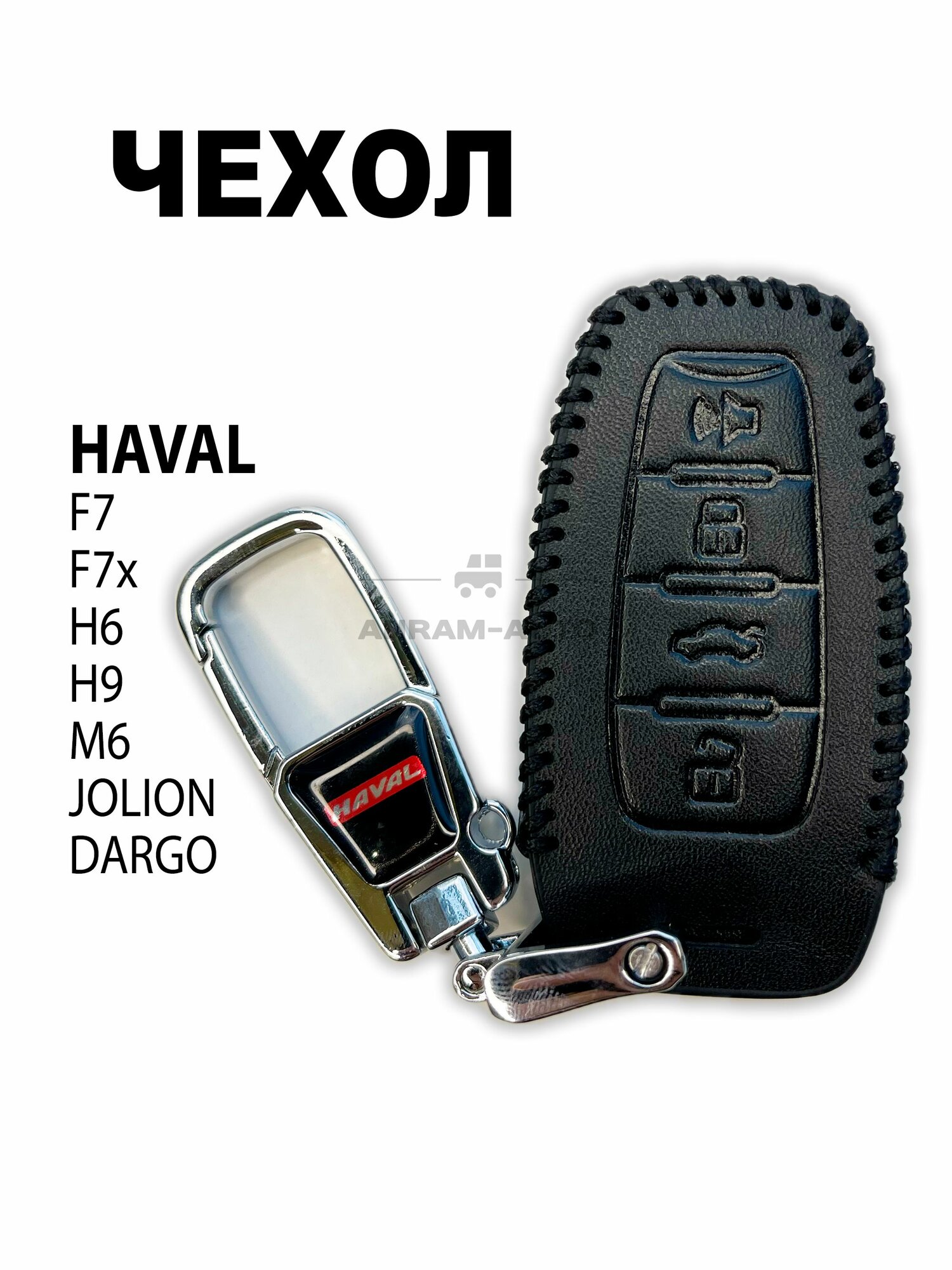 Кожаный чехол для ключа с логотипом HAVAL F7, F7x, H6, H9, М6, Jolion, Dargo брелок с карабином (черный) интересное: