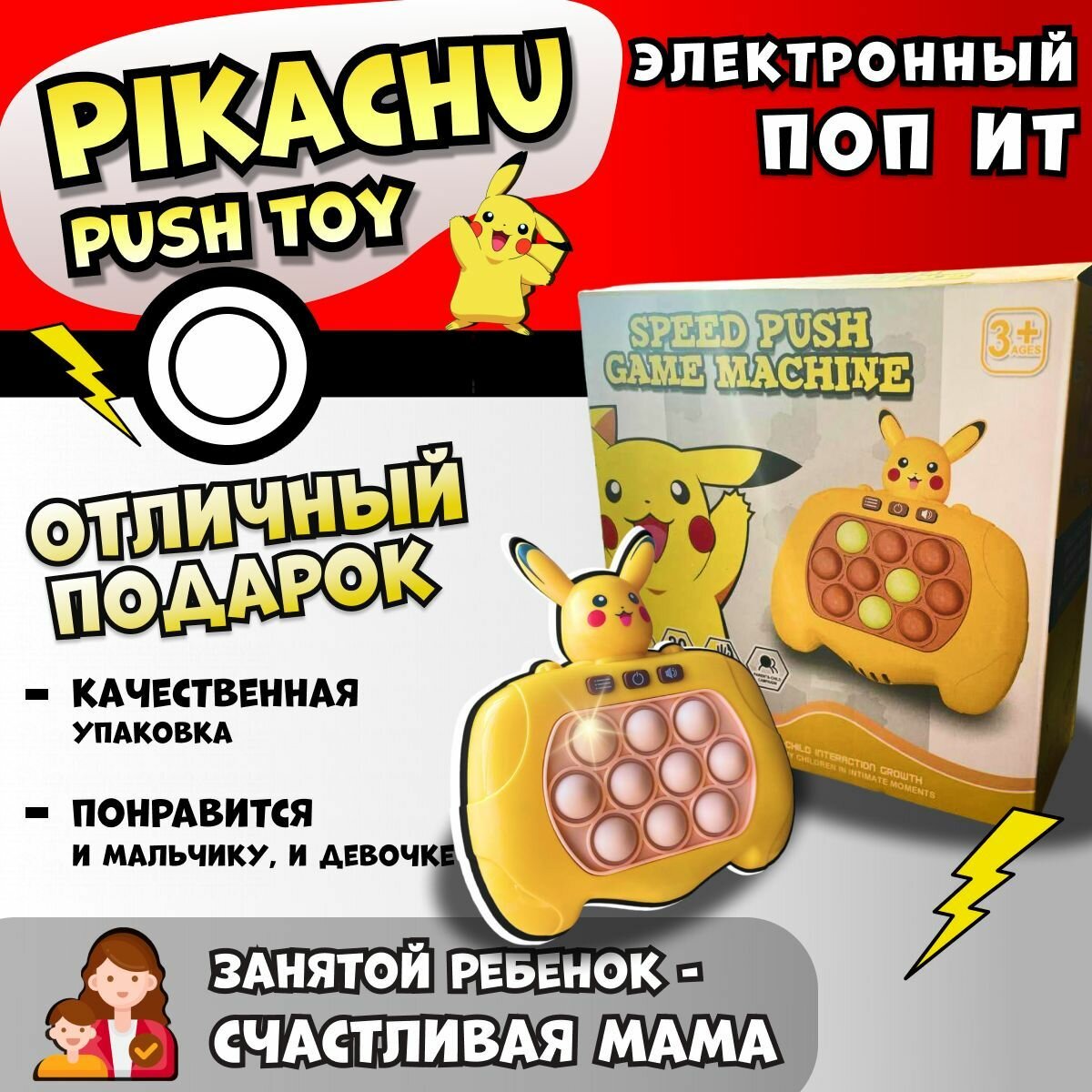Ниже Вы можете прочитать отзывы на Электронный поп ит Пикачу Интерактивная игрушка антистресс pop it симпл димпл, ознакомится с подробными характеристиками, посмотреть интересные обзоры и фотографии на Электронный поп ит Пикачу Интерактивная игрушка антистресс pop it симпл димпл.