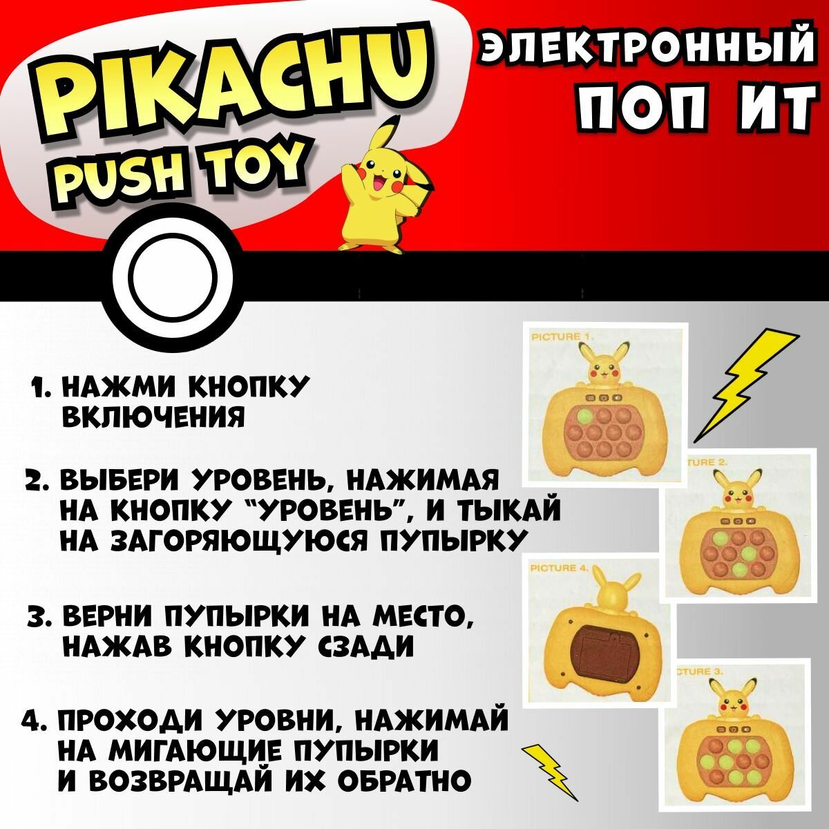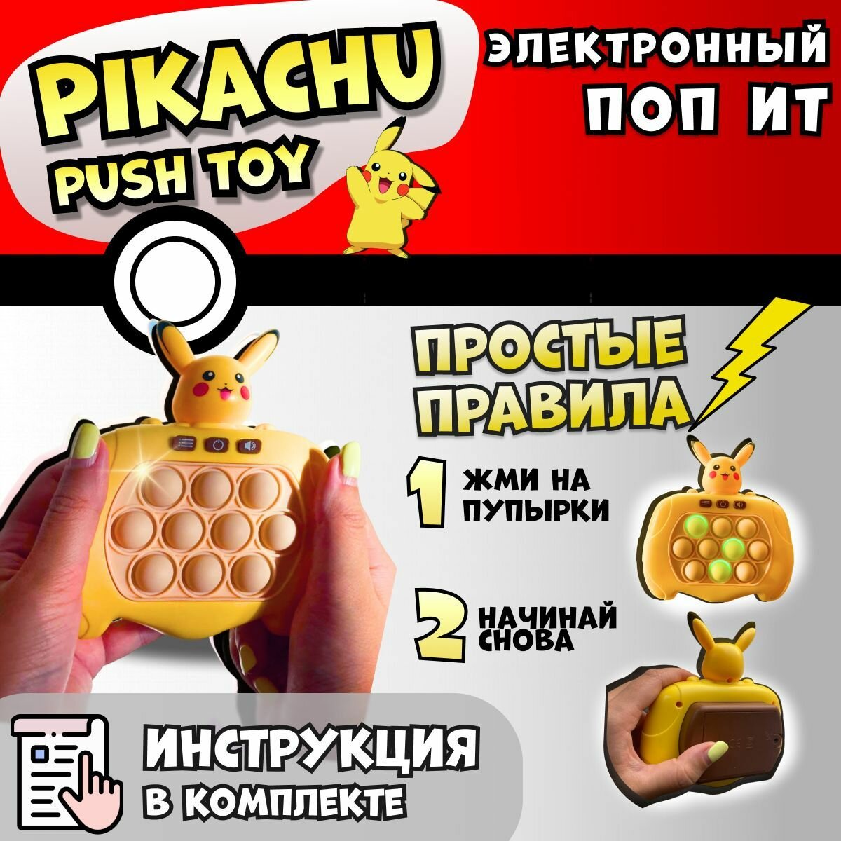Электронный поп ит Пикачу / Интерактивная игрушка антистресс симпл димпл