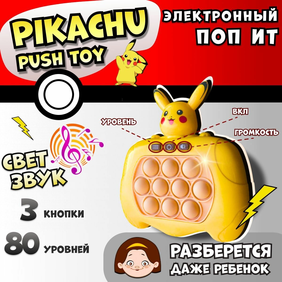 Купить Электронный поп ит Пикачу Интерактивная игрушка антистресс pop it симпл димпл