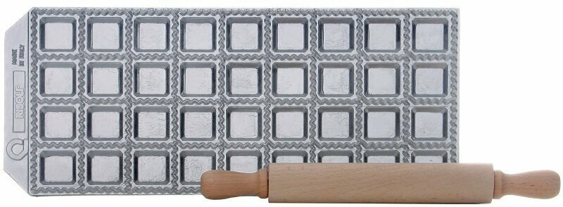 Форма для равиоли Risoli 310х135х15мм, 36 ячеек 25х25мм, со скалкой, литой алюминий, дерево интересное: