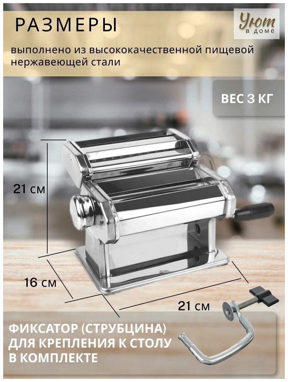 | Особенности | мытье в посудомоечной машине / регулировка толщины теста / струбцина для крепления к столу |